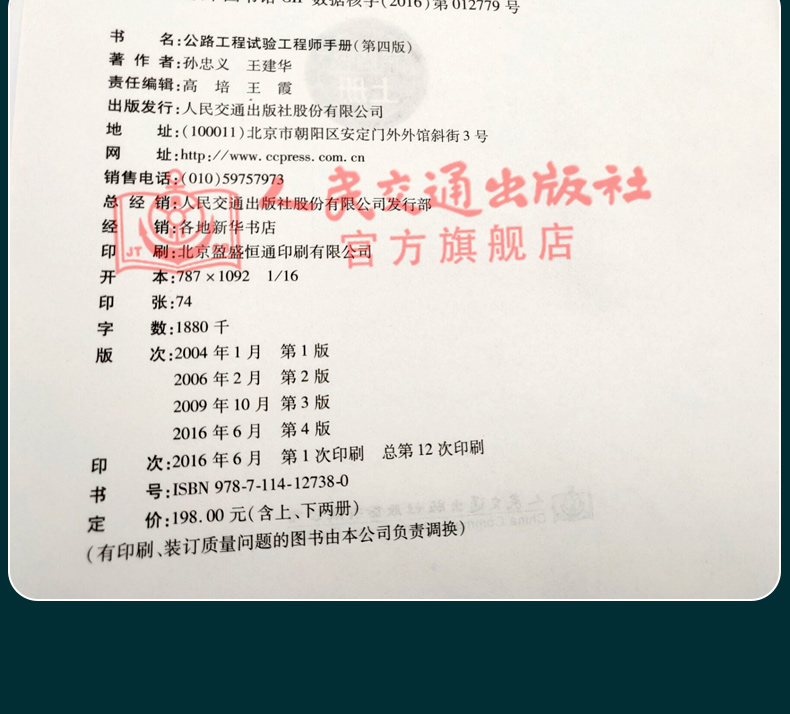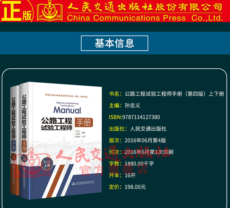 书名:正版现货 公路工程试验工程师手册(第四版)上下册 孙忠义、王建华编著 适合公路工程施工试验工作人员用书