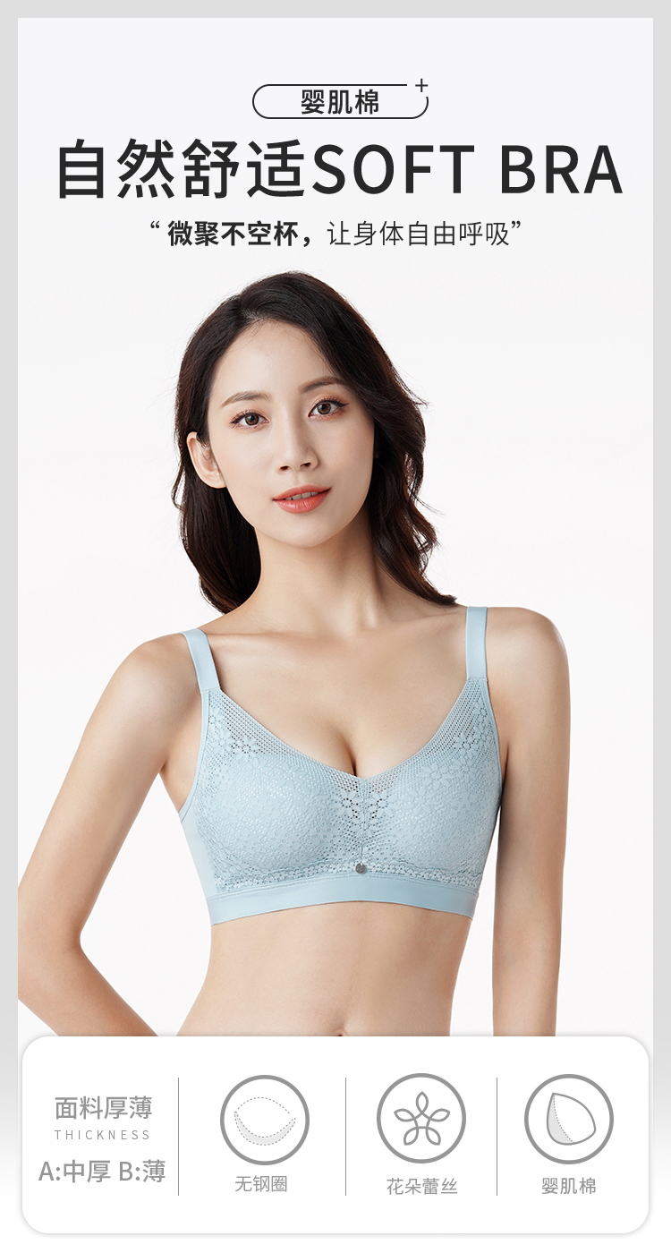 都市丽人内衣自然舒适A:中厚B:薄蕾丝三排扣无钢圈3/4杯常规文胸LB25A3