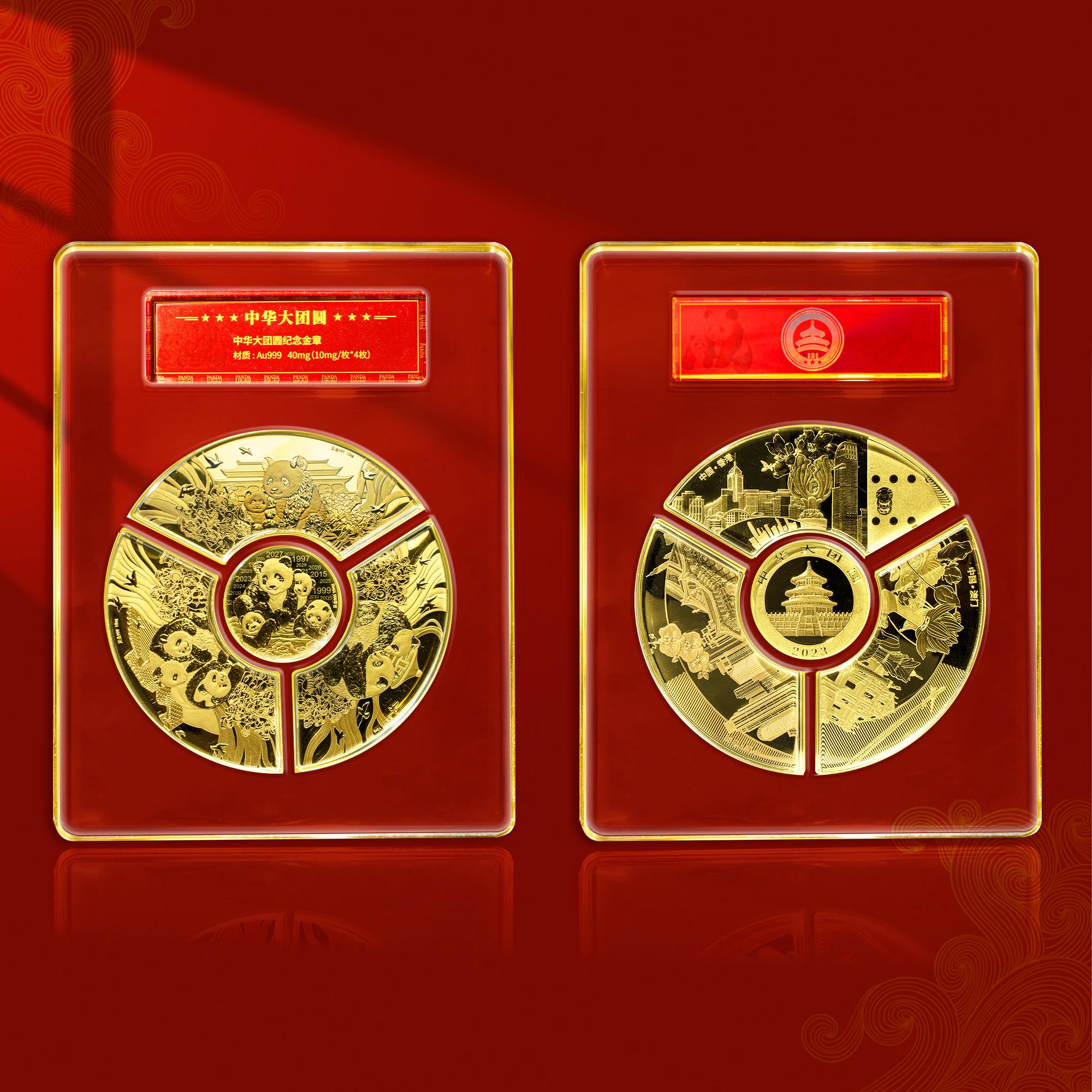 中华大团圆-熊猫纪念章一套4枚封装珍藏版(带礼盒证书)