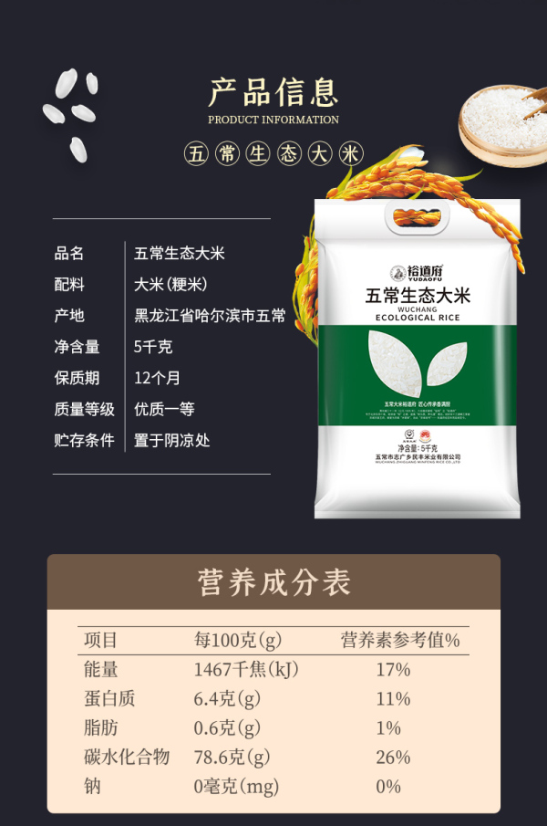 裕道府五常大米早香系列5kg生态大米(绿色)GB/T 19266