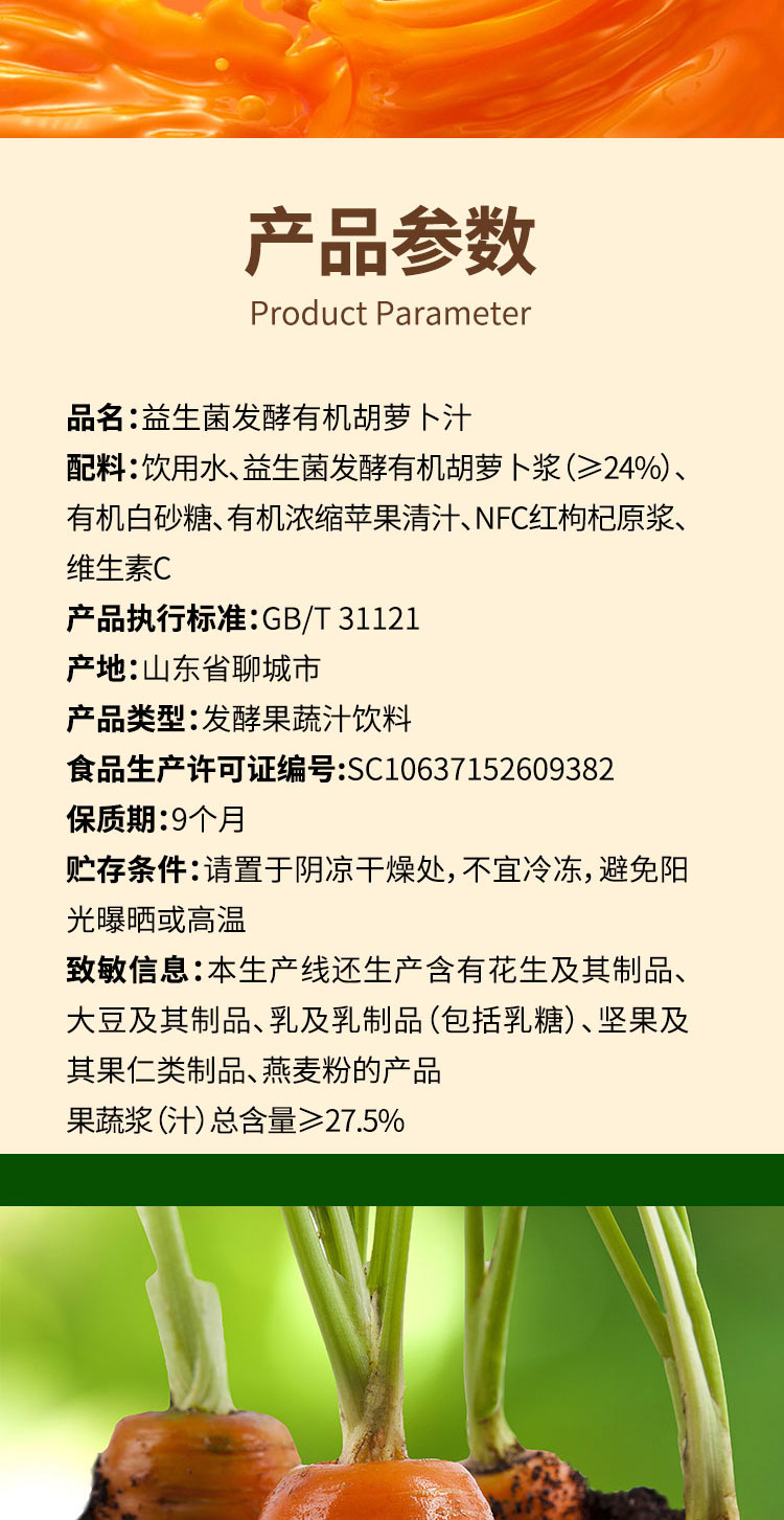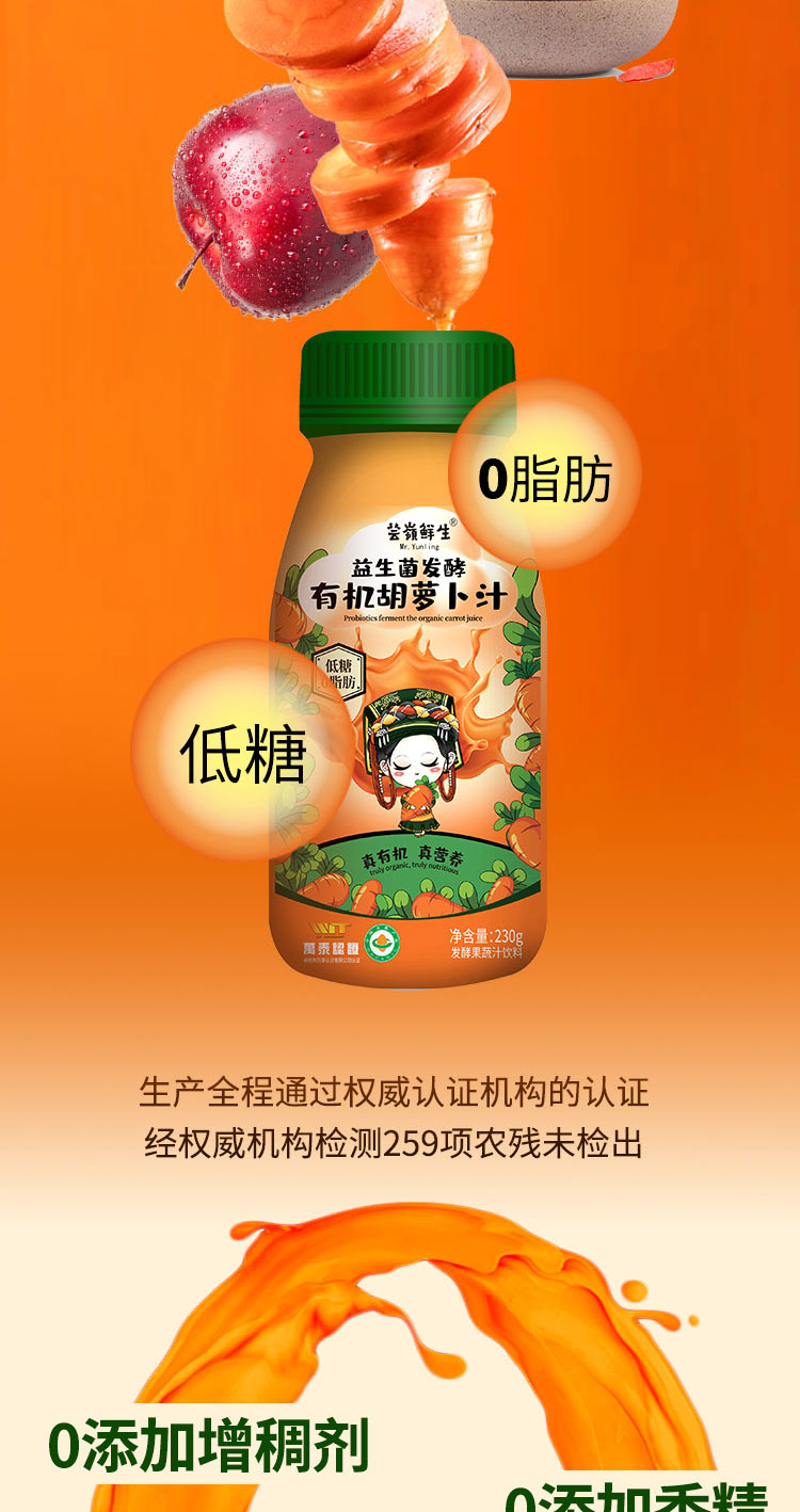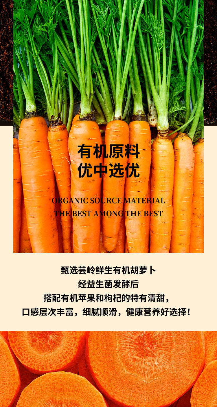 芸岭鲜生 有机胡萝卜汁 益生菌发酵 230g*10瓶