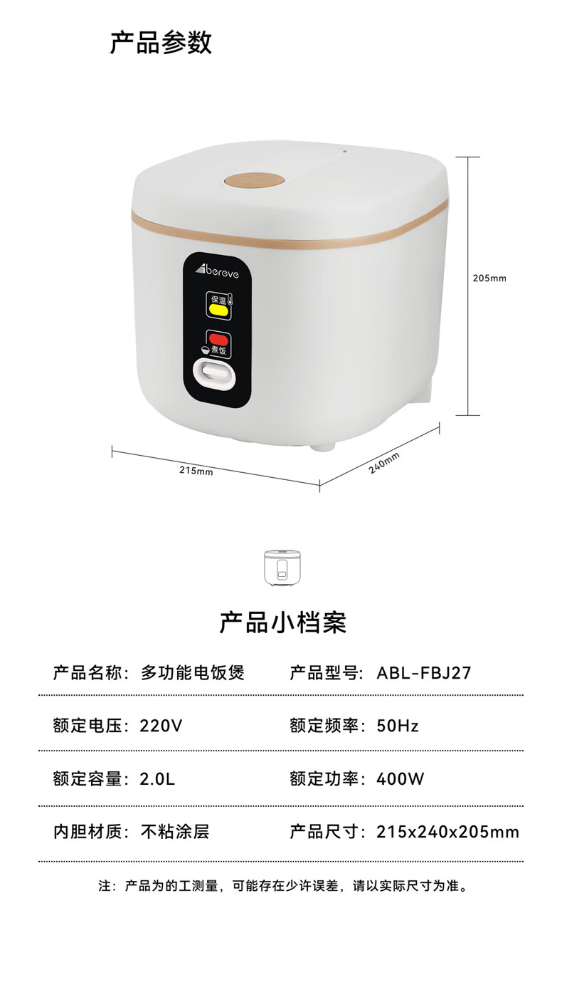 【小家电】Abereve艾贝丽电饭煲ABL-FBJ27 HF