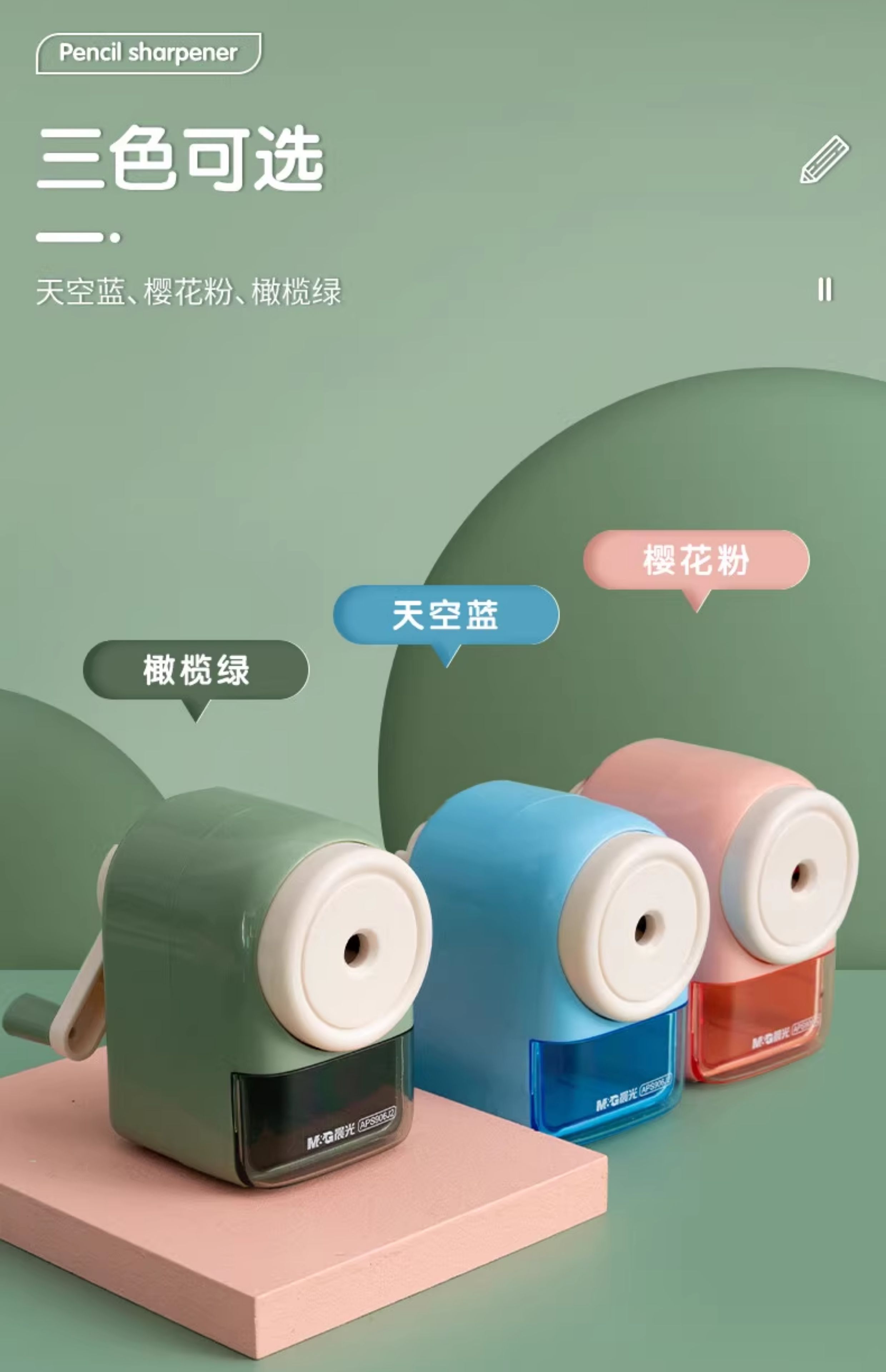APS906J2晨光手摇式卷笔刀小学生多功能铅笔削笔器开学必备削笔机(颜色随机)