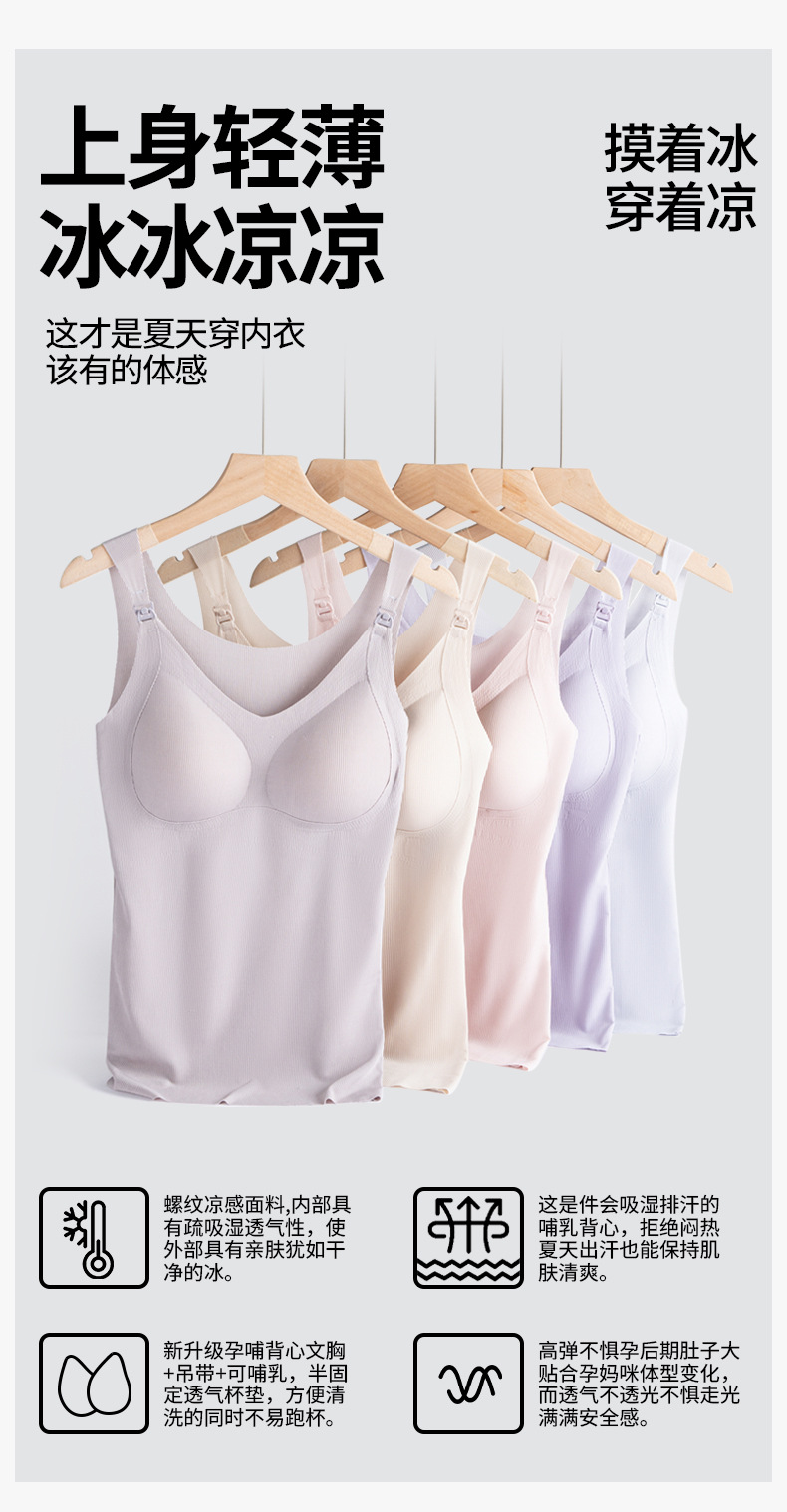 摸着冰 穿着凉 这才是夏天穿的内衣 孕妇内衣新款薄款可调节哺乳衣内衣孕妇吊带背心哺乳内衣