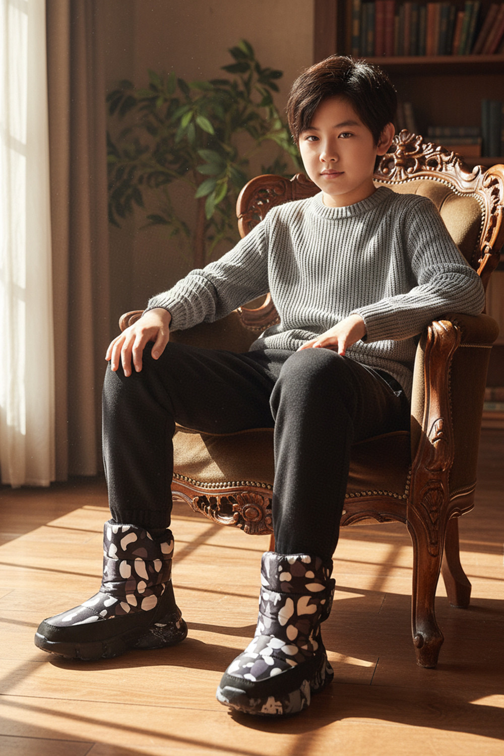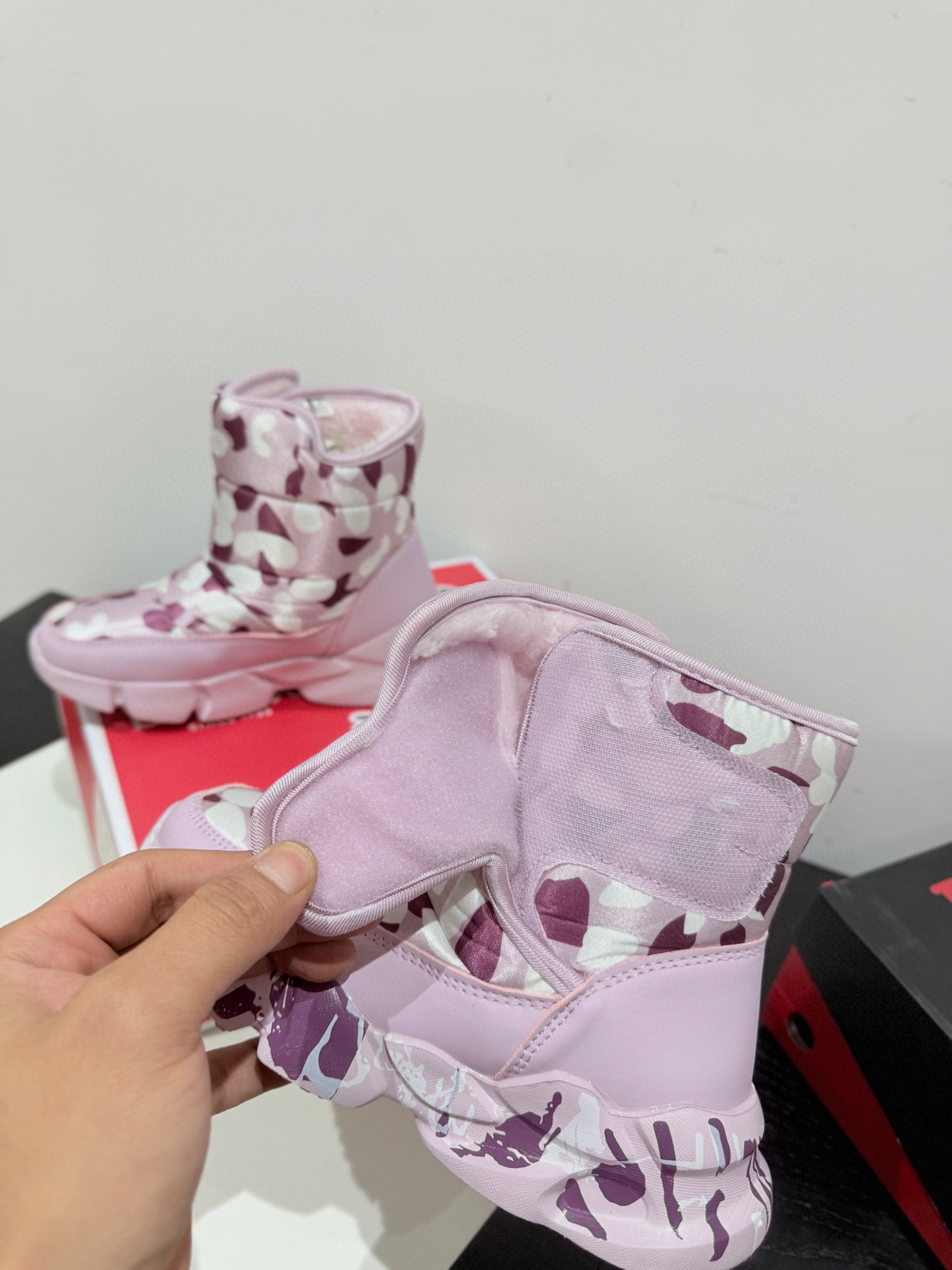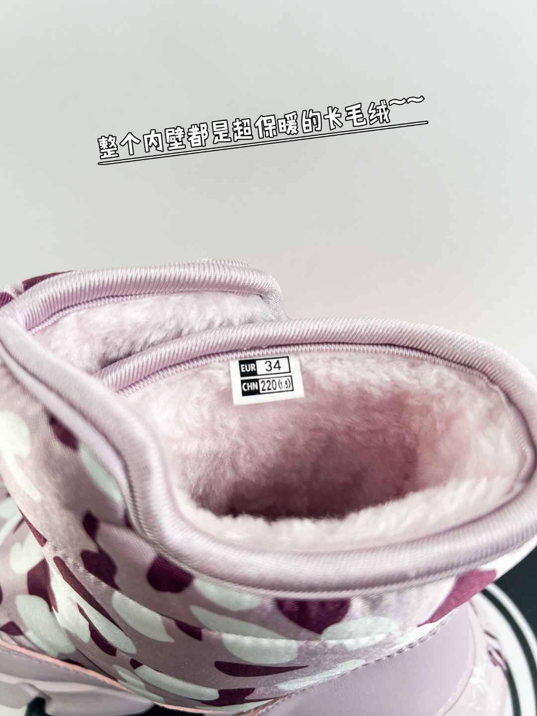 防泼水面层➕加厚暖暖长绒实力抗寒➕侧帮魔术贴设计方便穿脱➕橡塑雪地纹抓地纹理➕护踝高邦抗扭转设计