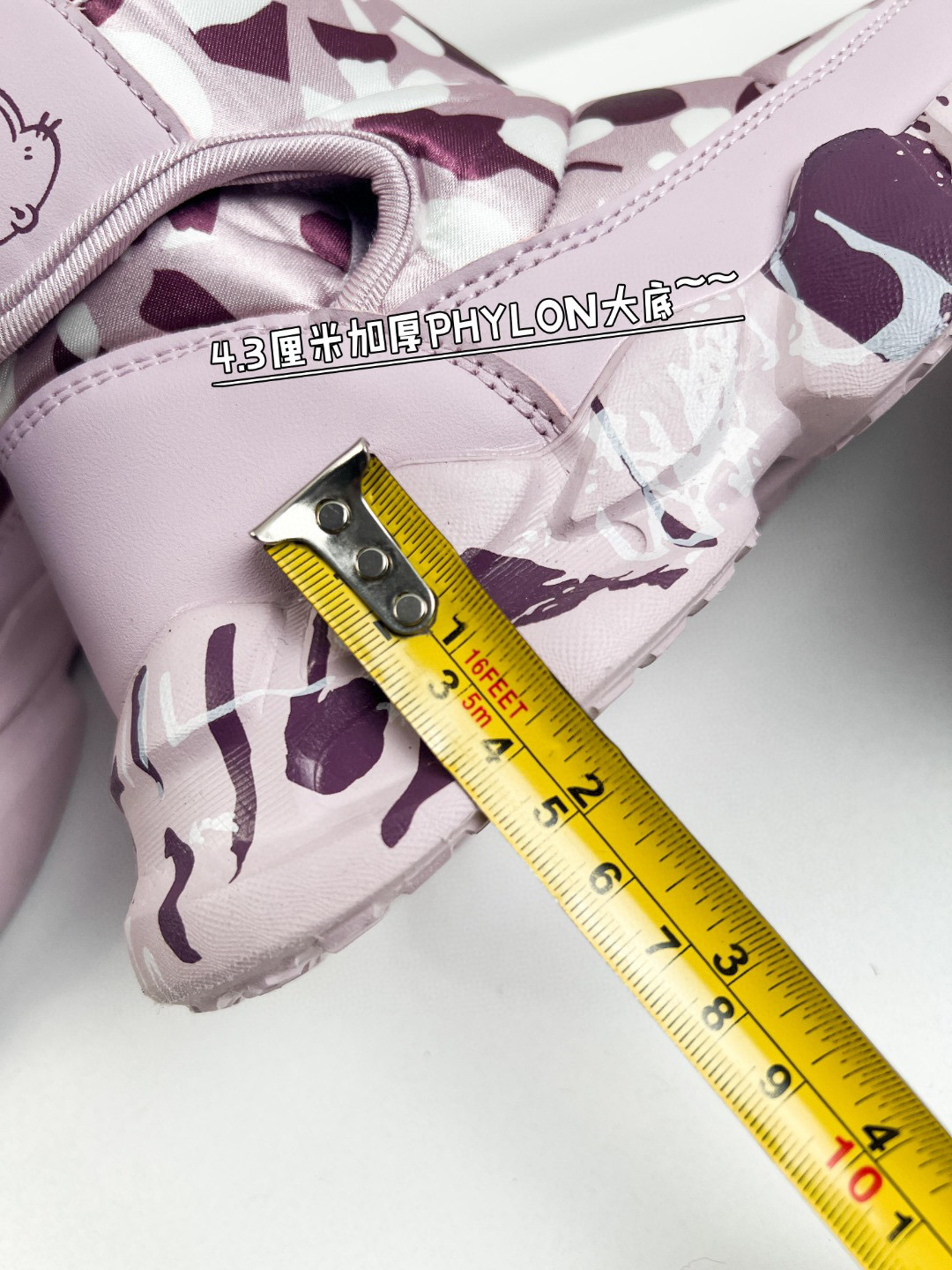 便捷性高帮鞋筒,外侧带品牌logo的大片魔术贴!非常方便穿脱,厚底4CM减震蓄温大底