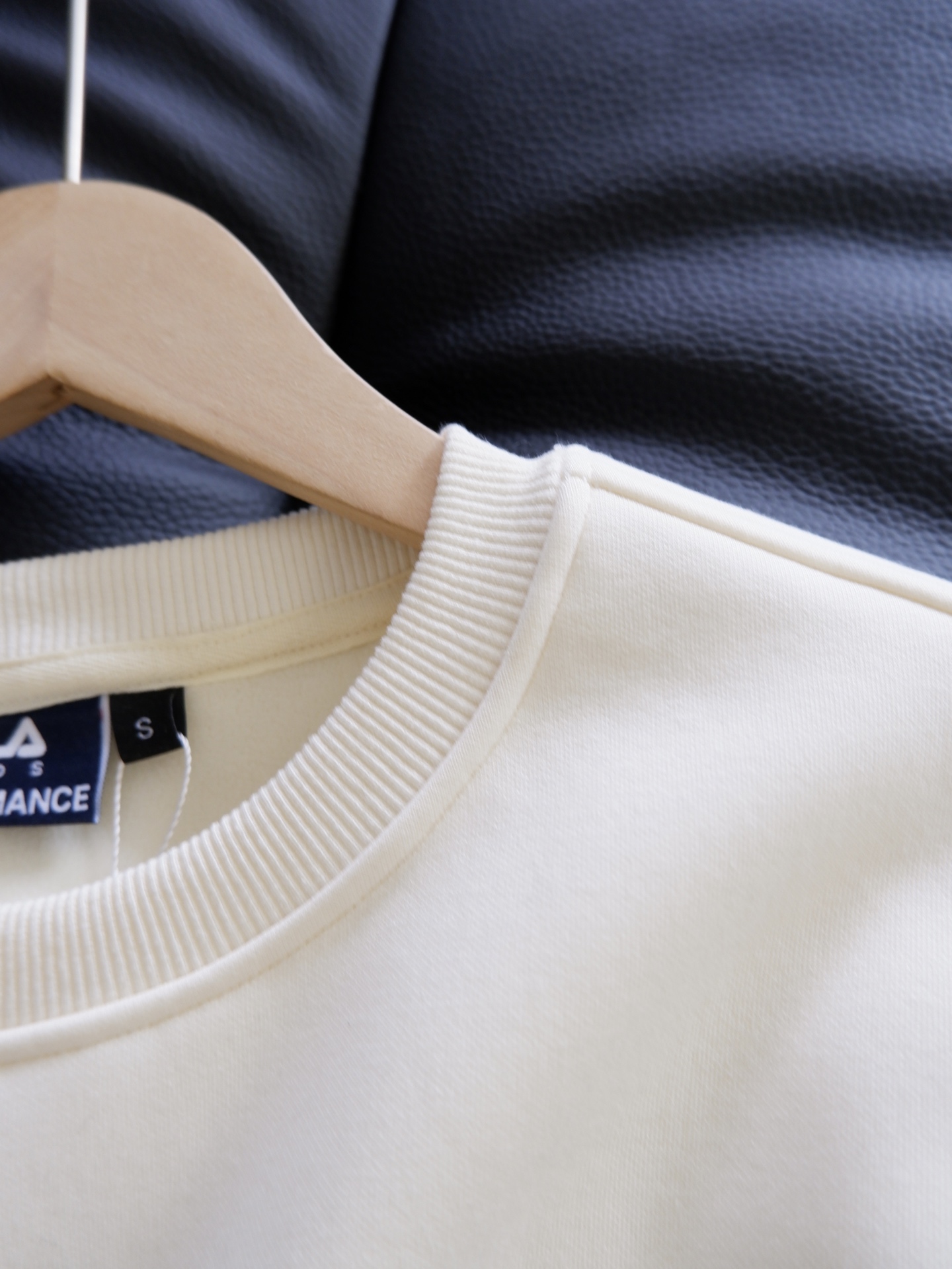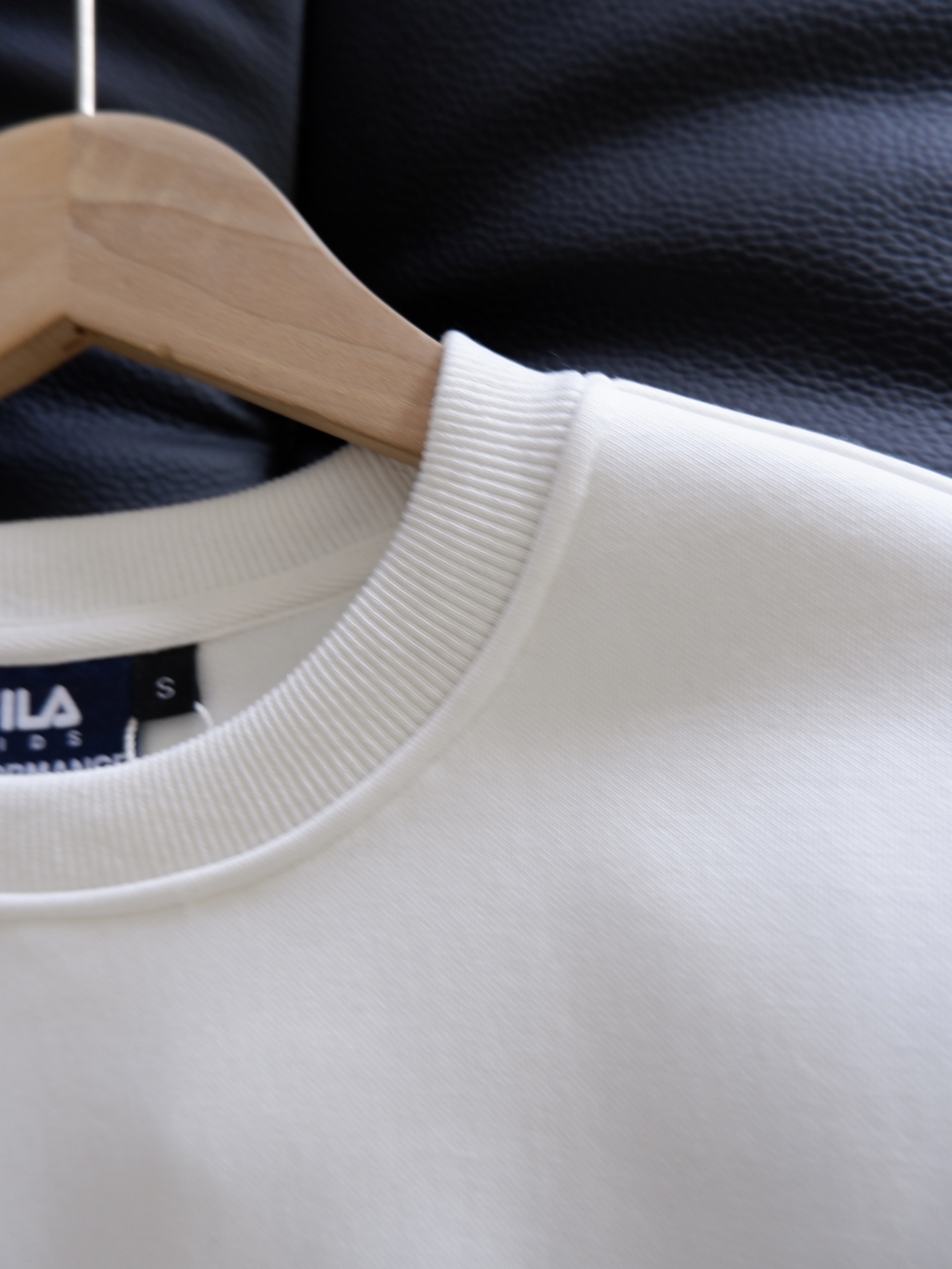 精心设计的螺纹领口工艺,弹性超棒,能贴合颈部不紧绷,还不易变形,长时间穿着也能保持利落版型