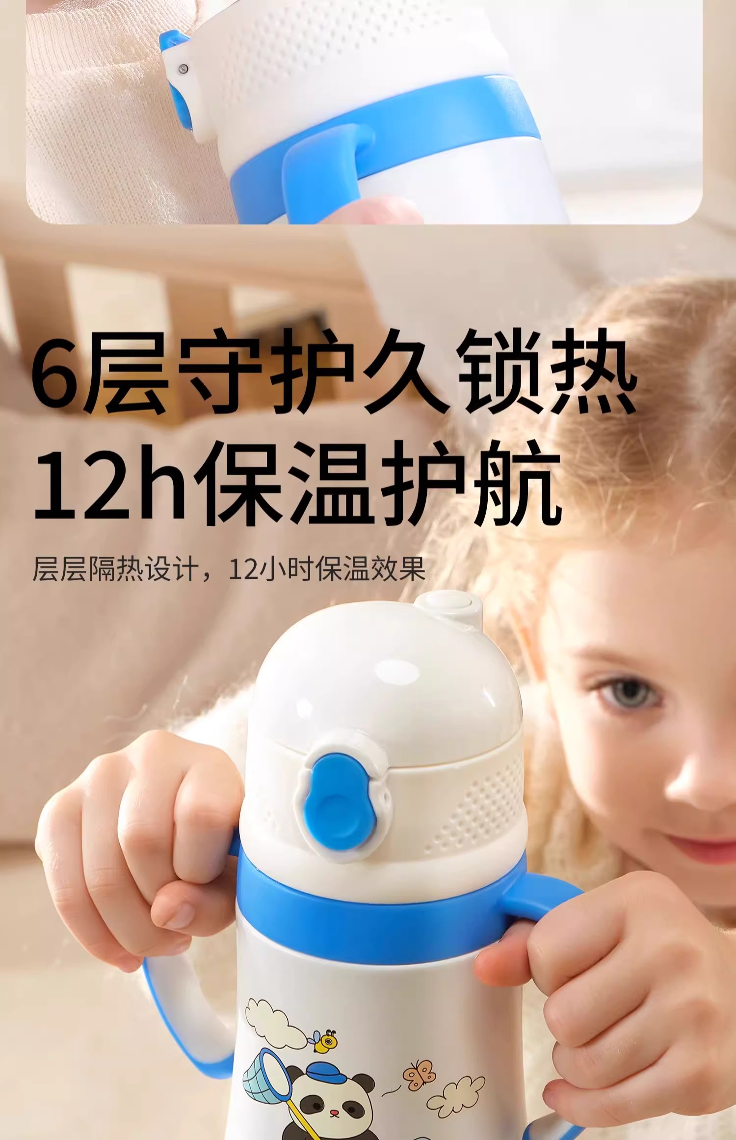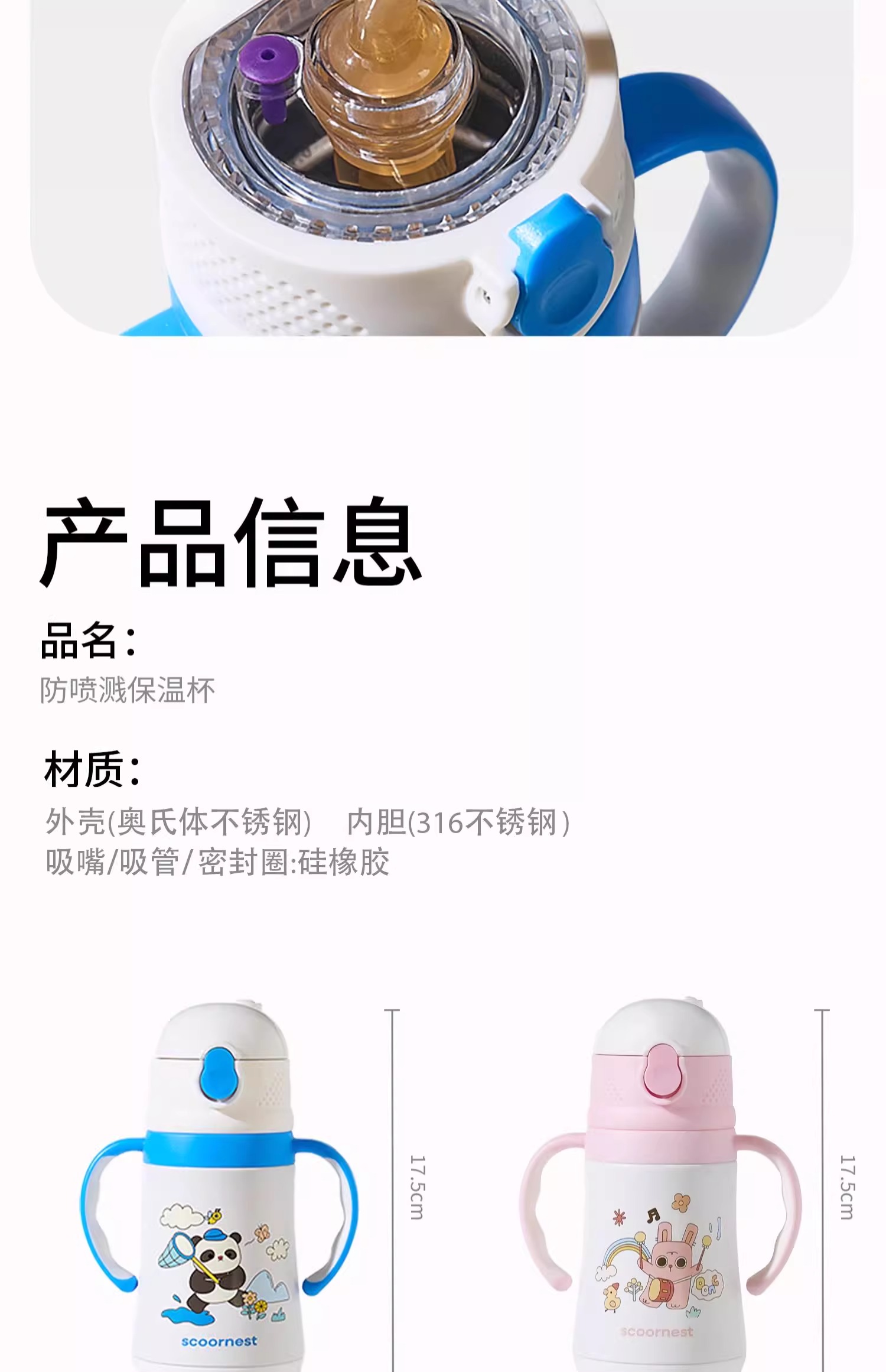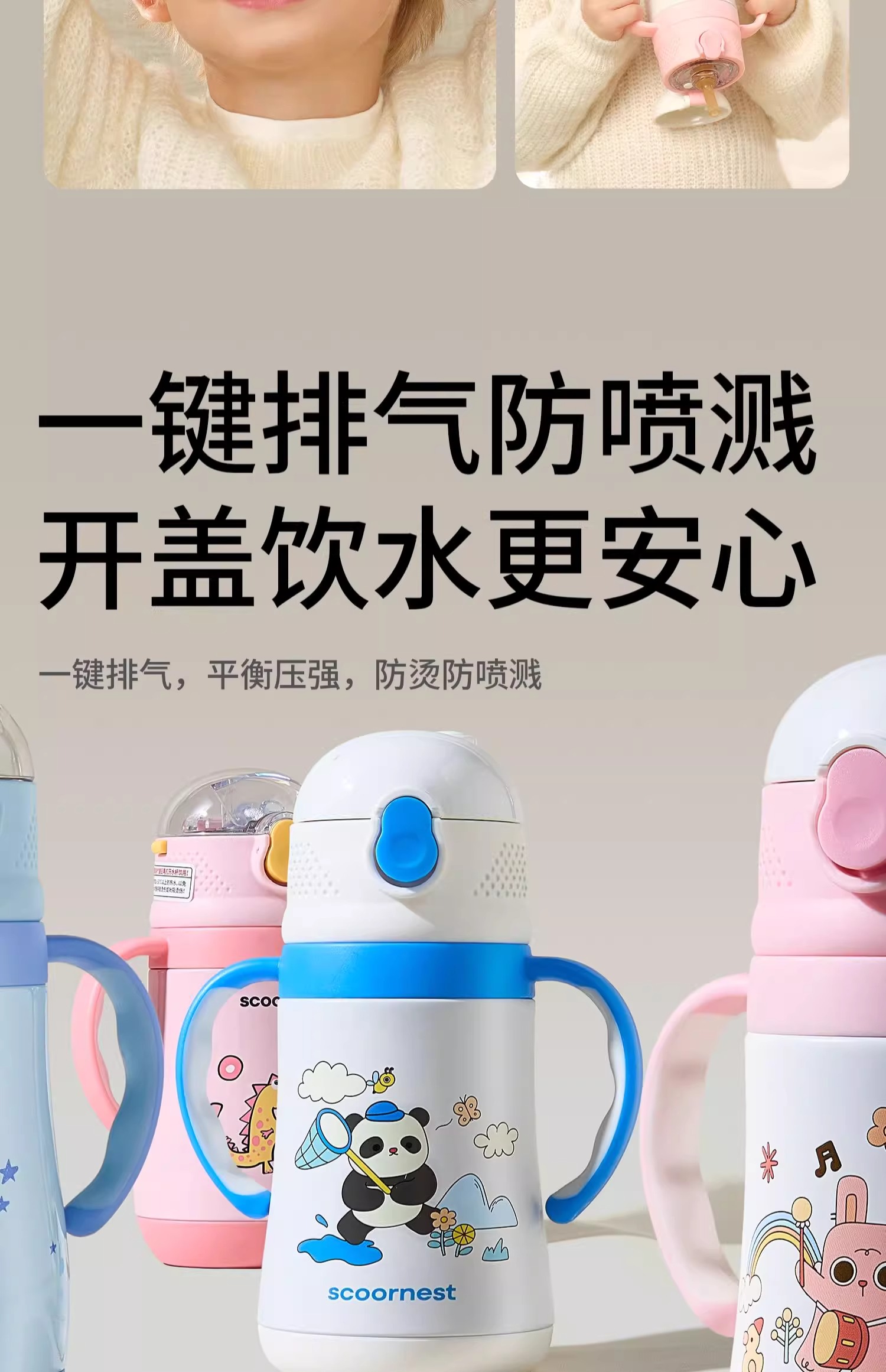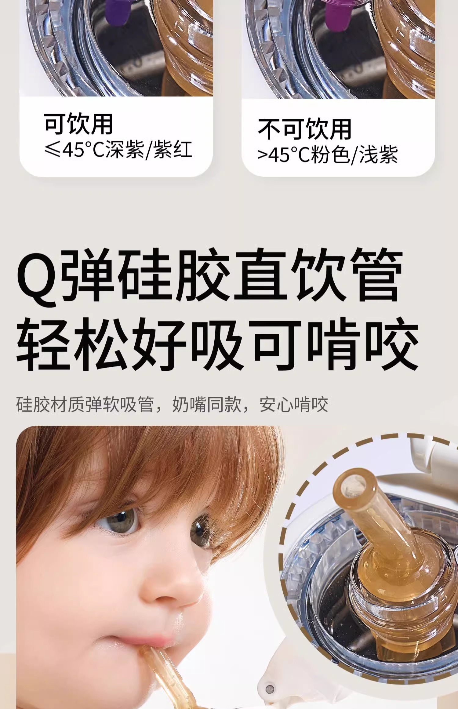 科巢儿童保温杯带吸管杯宝宝水杯婴儿学饮杯两用水杯防喷溅保温杯