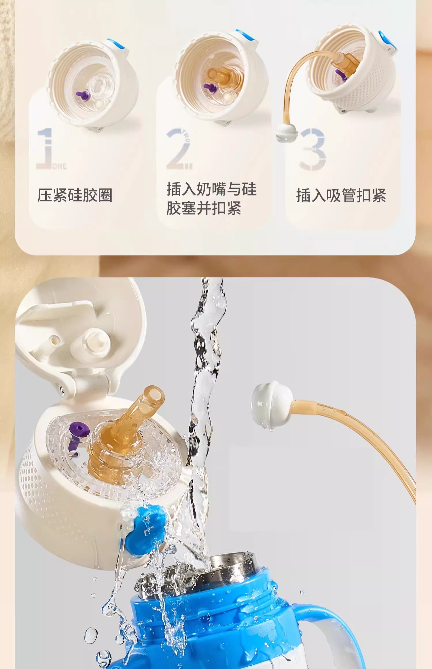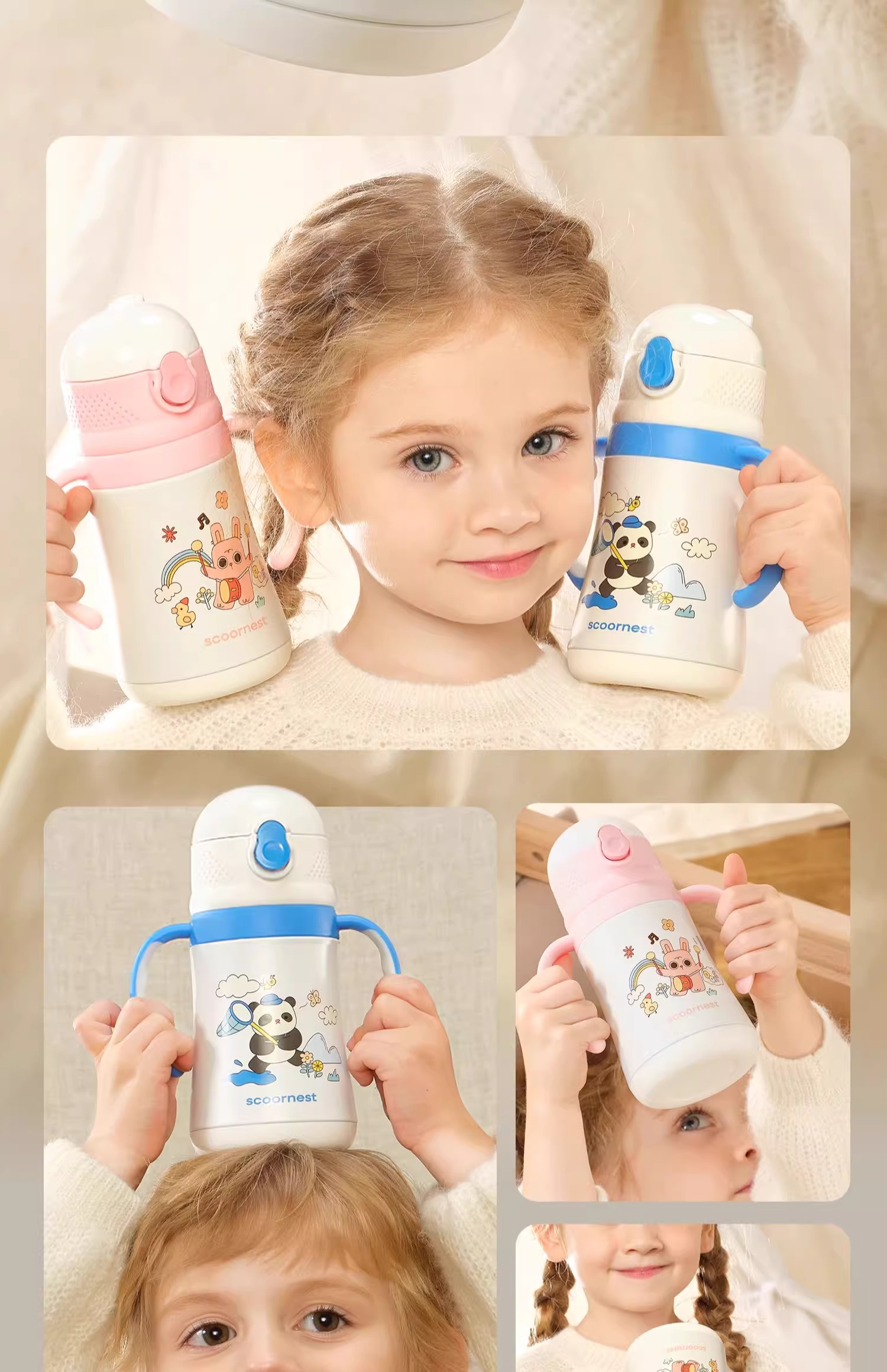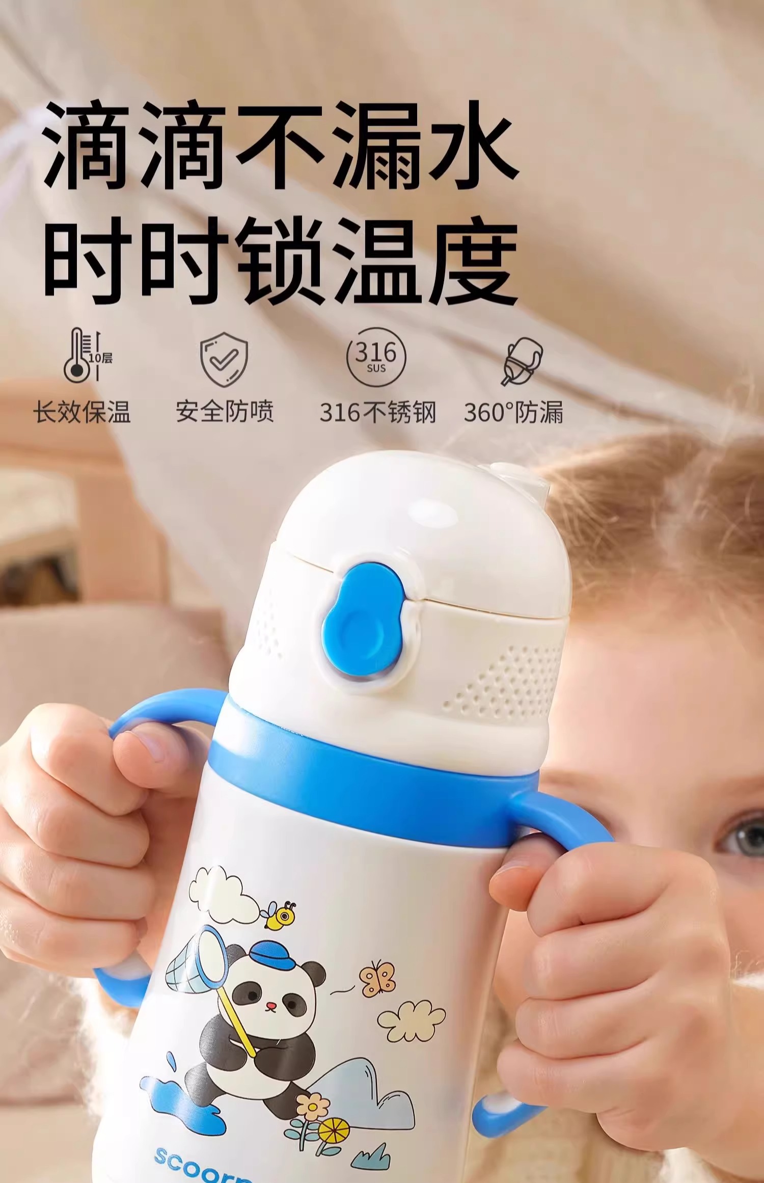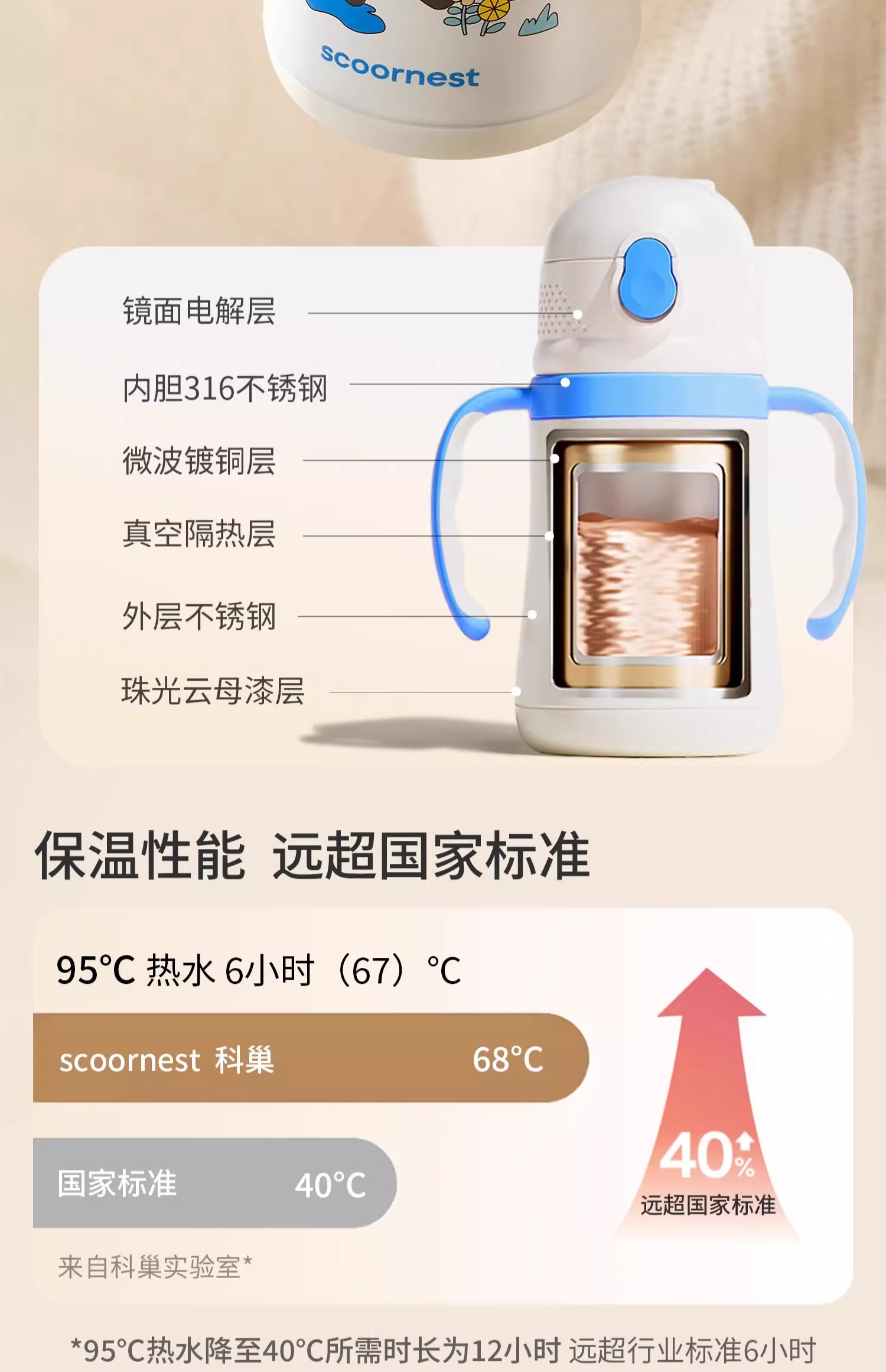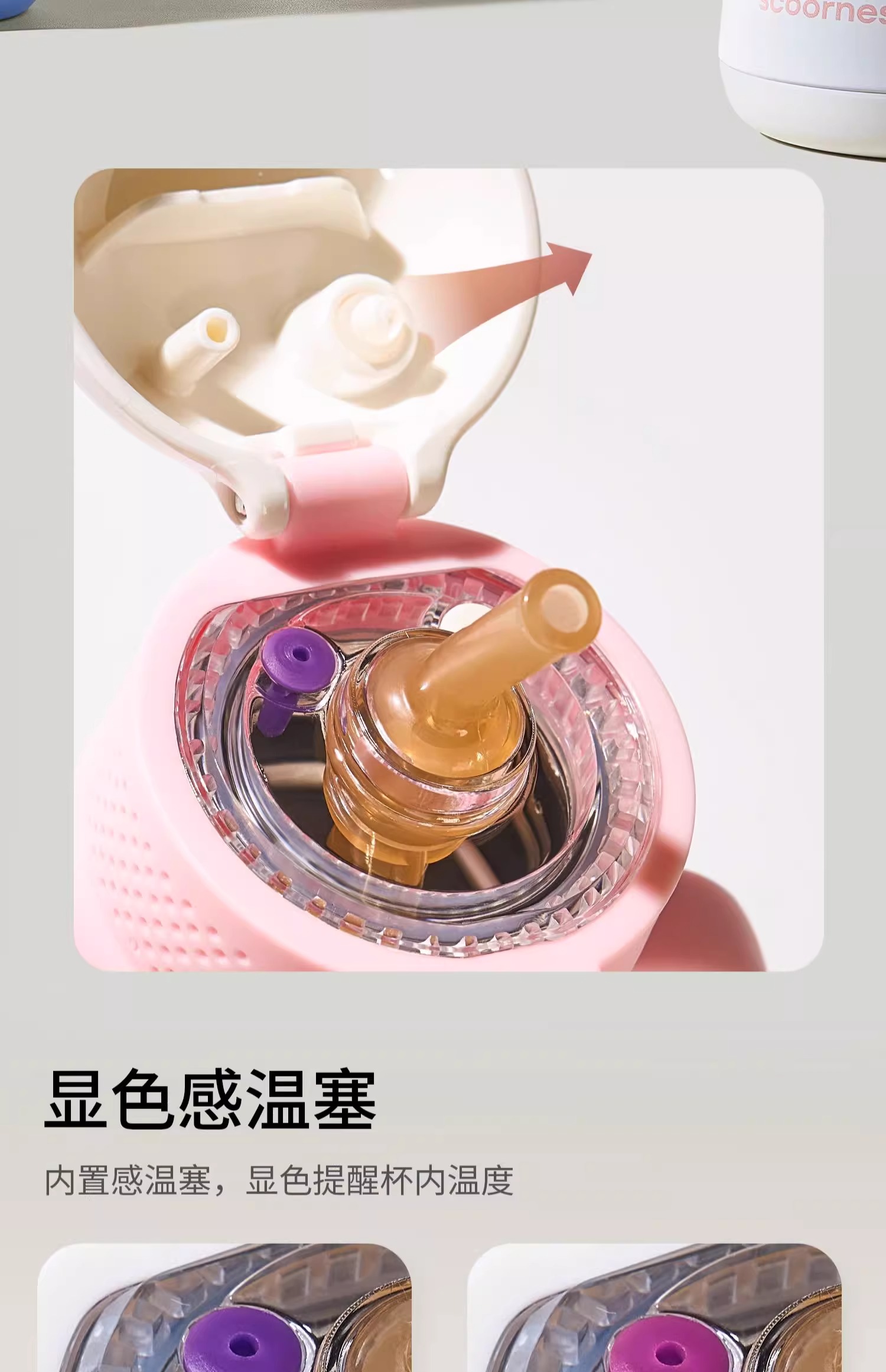 科巢儿童保温杯带吸管杯宝宝水杯婴儿学饮杯两用水杯防喷溅保温杯