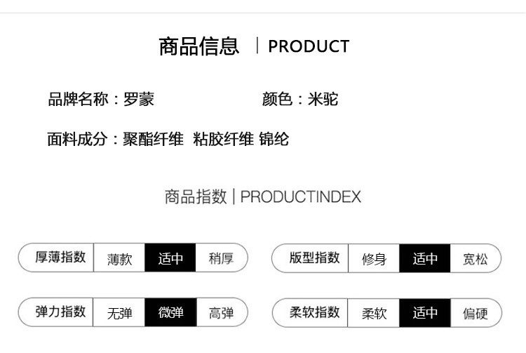 面料:50.9%粘胶纤维29.2%聚酯纤维19.9%锦纶