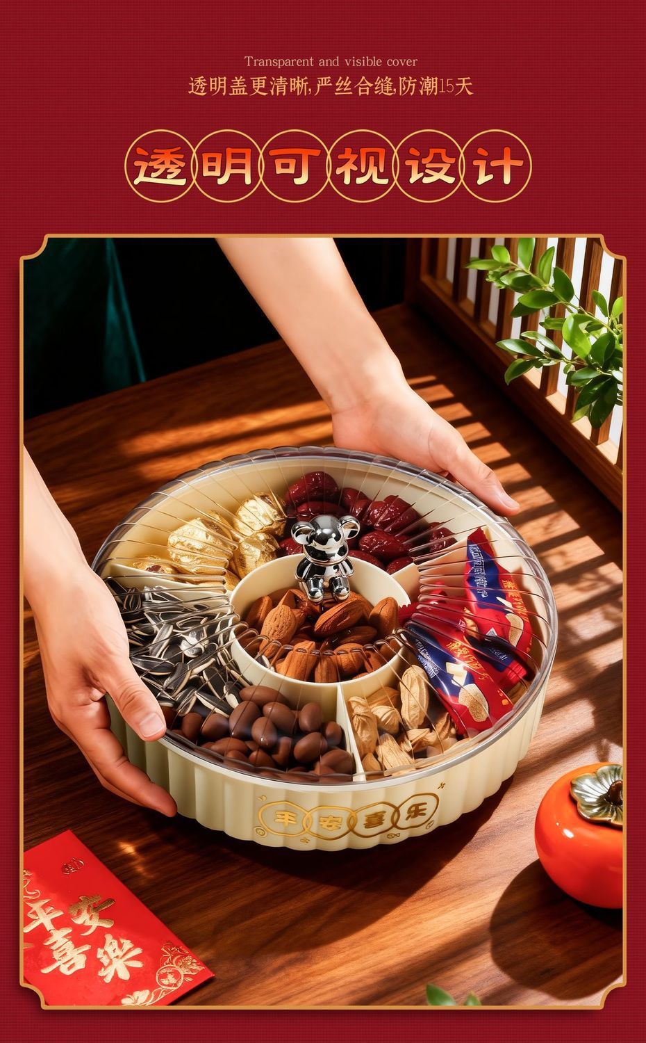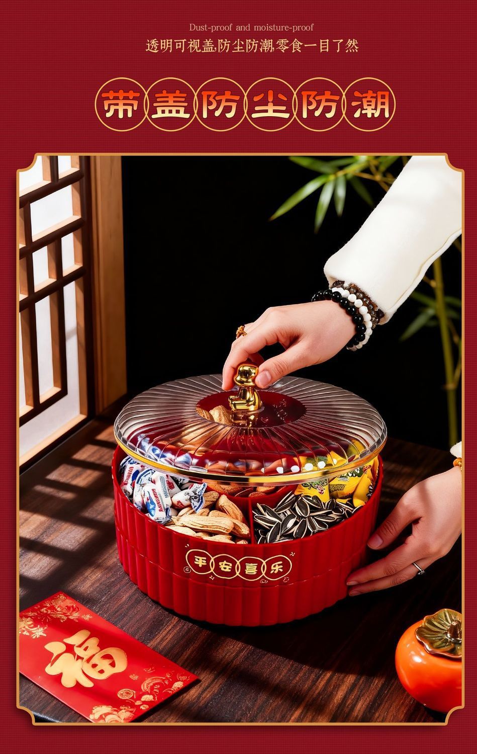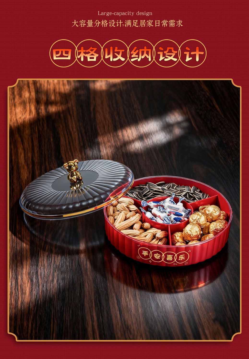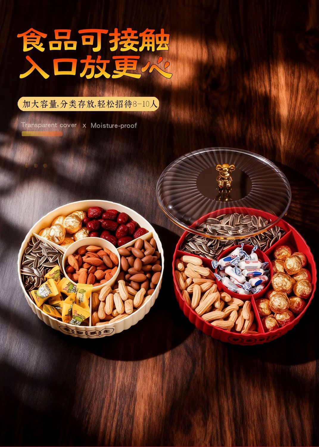 果盘客厅茶几家用高端零食盘糖果盒轻奢密封水果干果摆放盘收纳盒