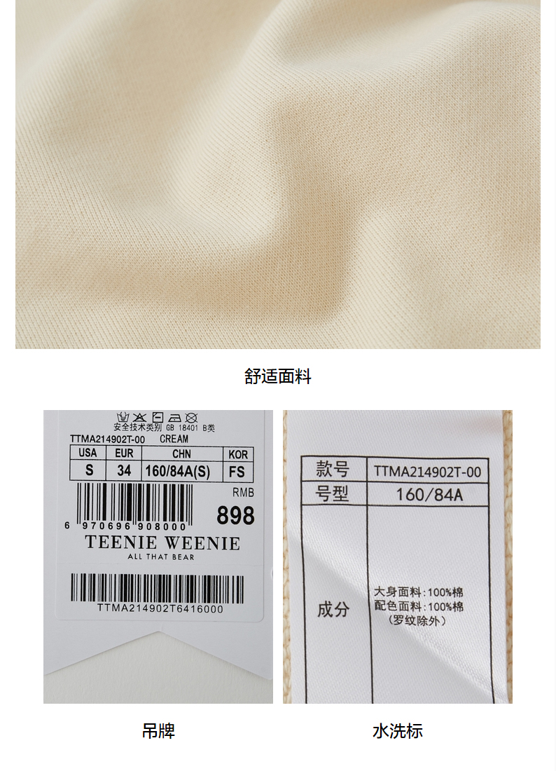 TeenieWeenie小熊圆领套头宽松韩版显瘦卫衣短款上衣抽绳松紧女冬TTMA214902T