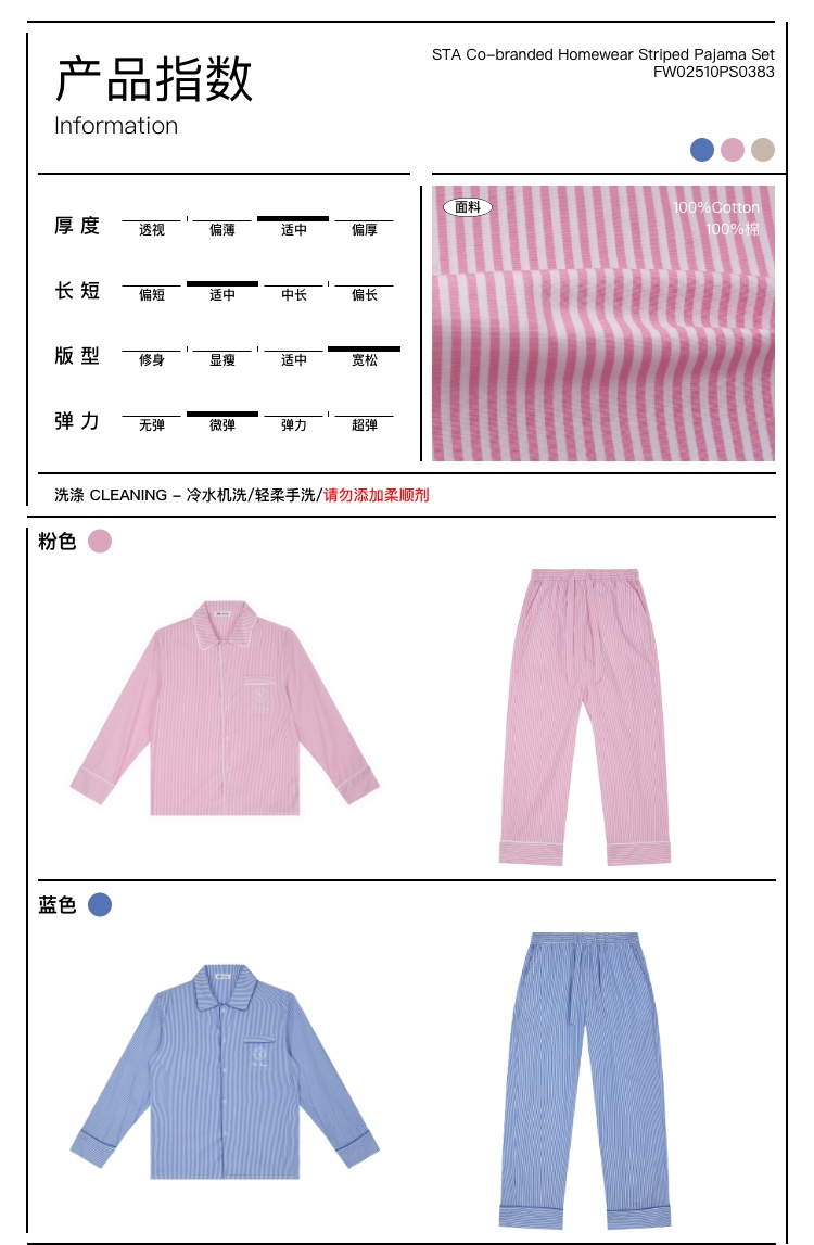STA联名家居条纹睡衣套装
