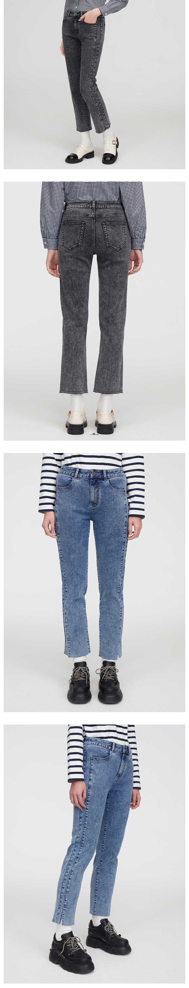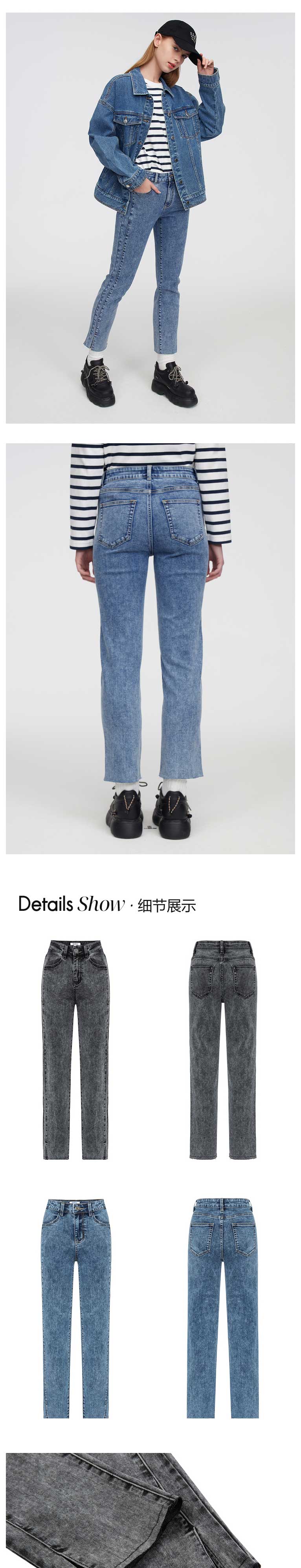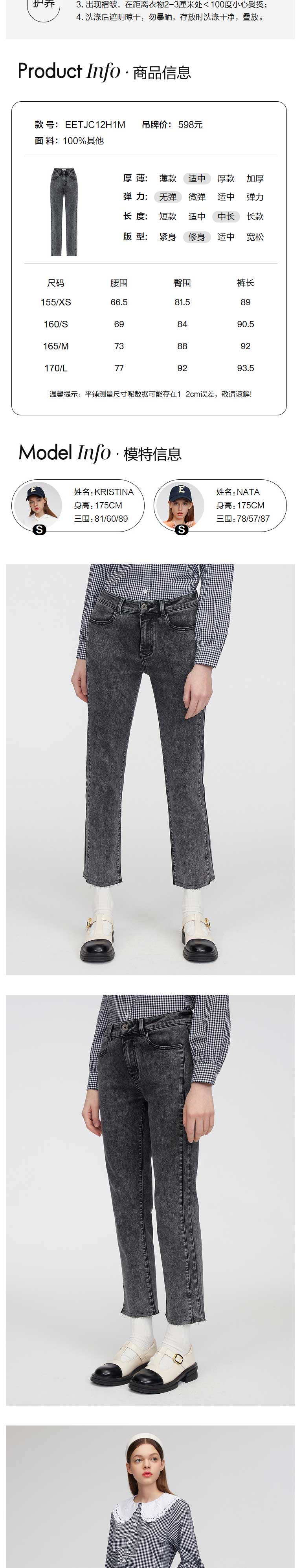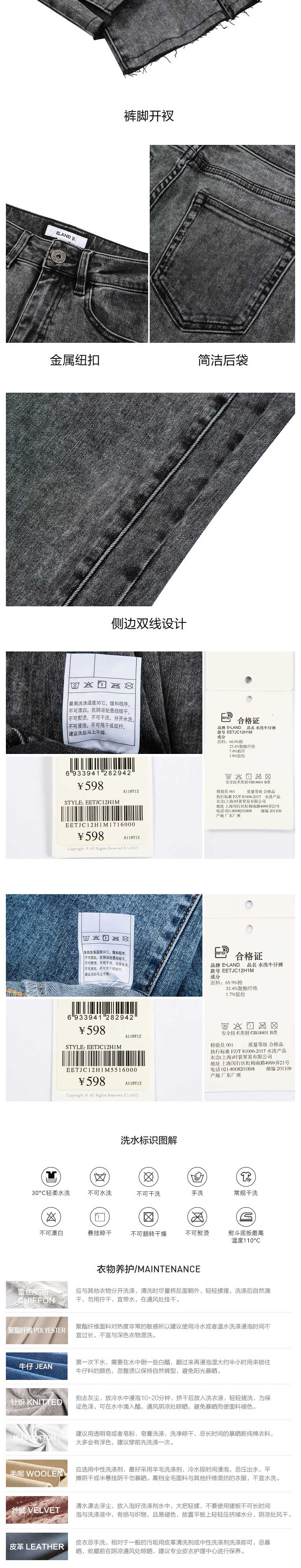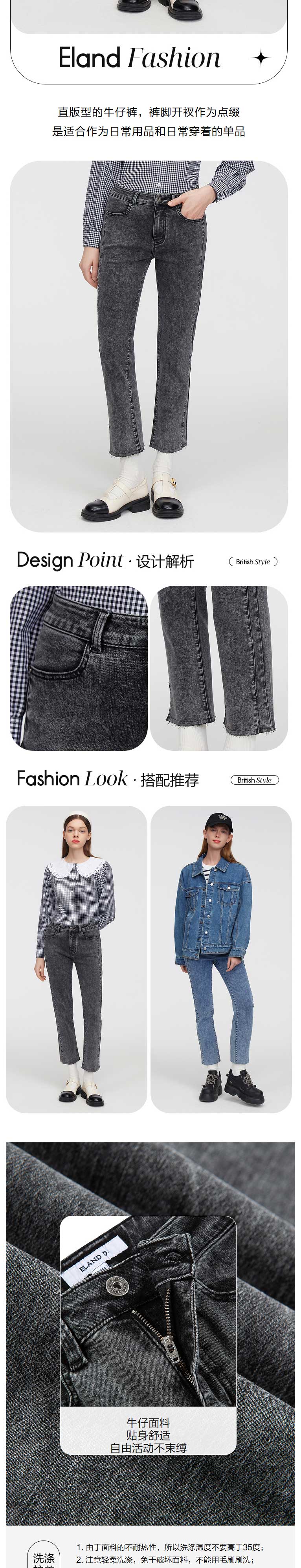 ELAND衣恋2022年春季新款简约修身裤脚设计感开衩纯色牛仔长裤女EETJC12H1M