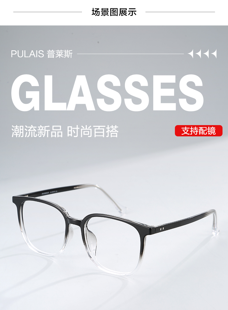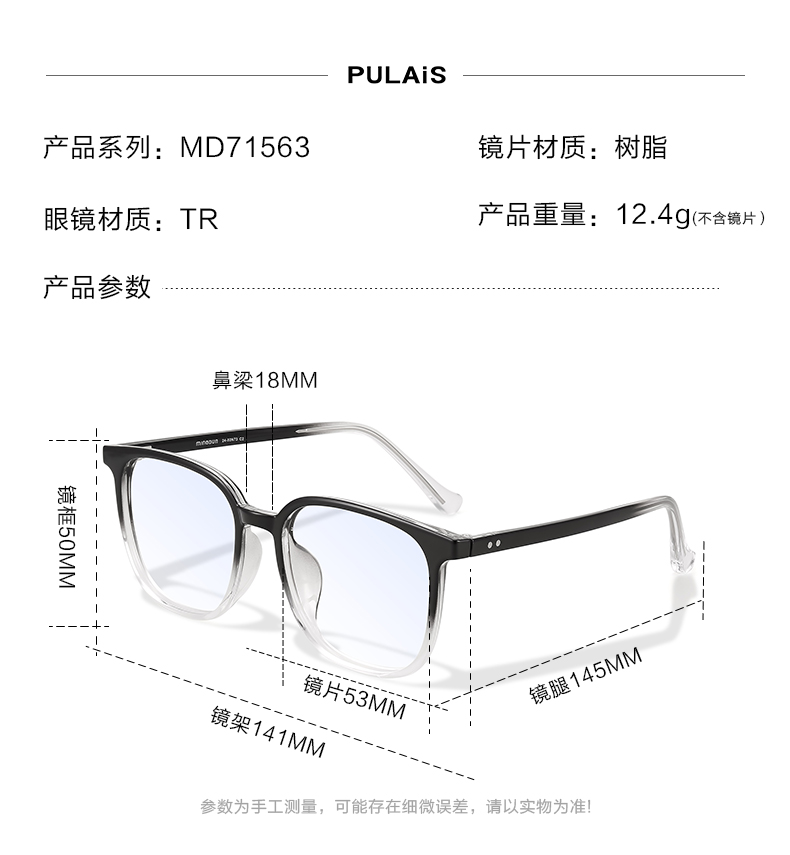 普莱斯光学镜框MD71563 时尚黑框 素颜百搭 一体式鼻托 男女同款 TR材质 三色可选