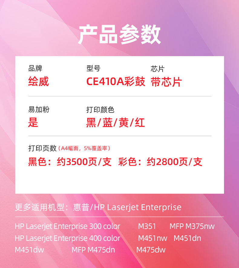 绘威臻享版 CE410A 305A硒鼓 黑色易加粉 适用惠普/HP M351 M451nw M451dn/dw墨盒MFP M375nw M475dn M475dw