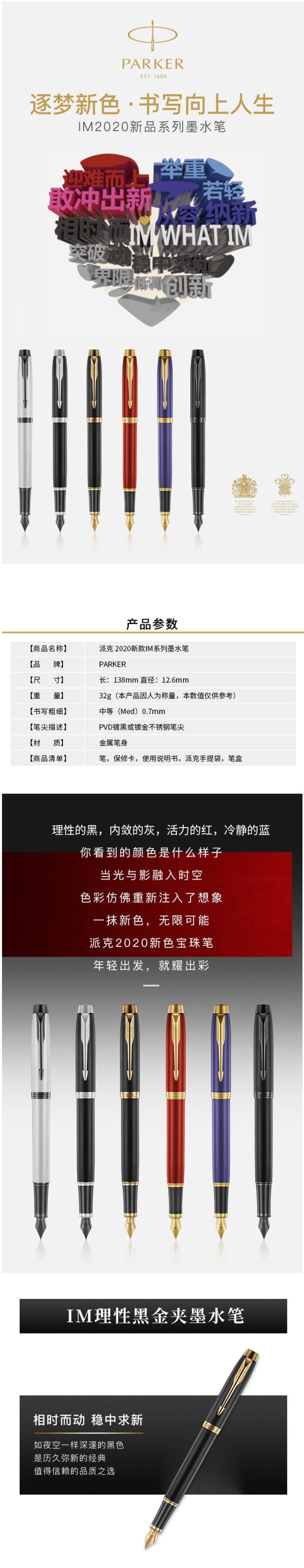 派克IM活力红/冷静蓝墨水笔