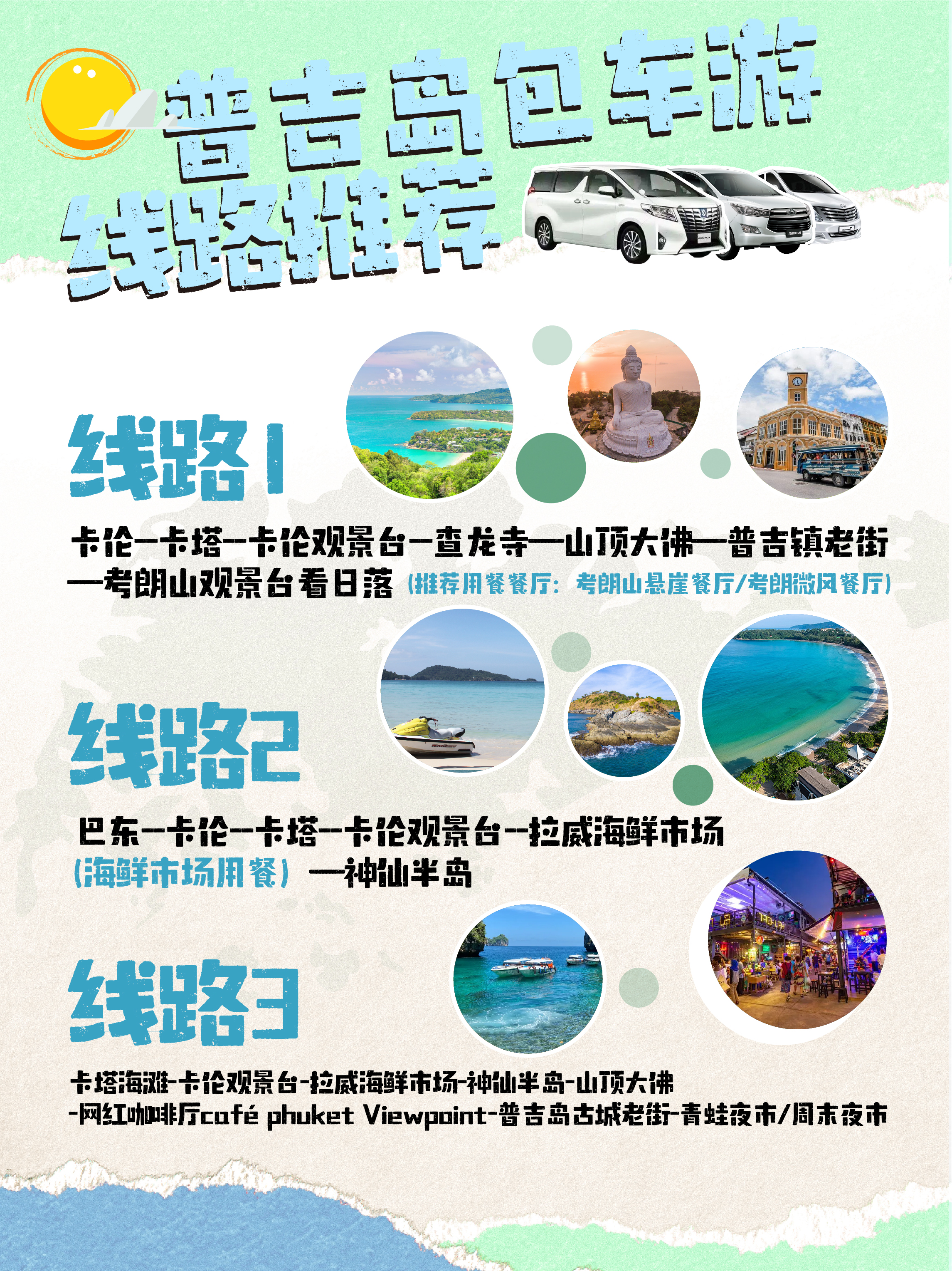 I线:酒店接人-卡伦观景台-查龙寺-山顶大佛-神仙半岛(看日落)-普吉镇周末市场-酒店/机场