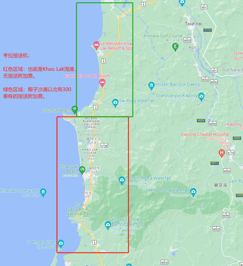 *普吉岛到考拉(蔻丽)接送机范围: