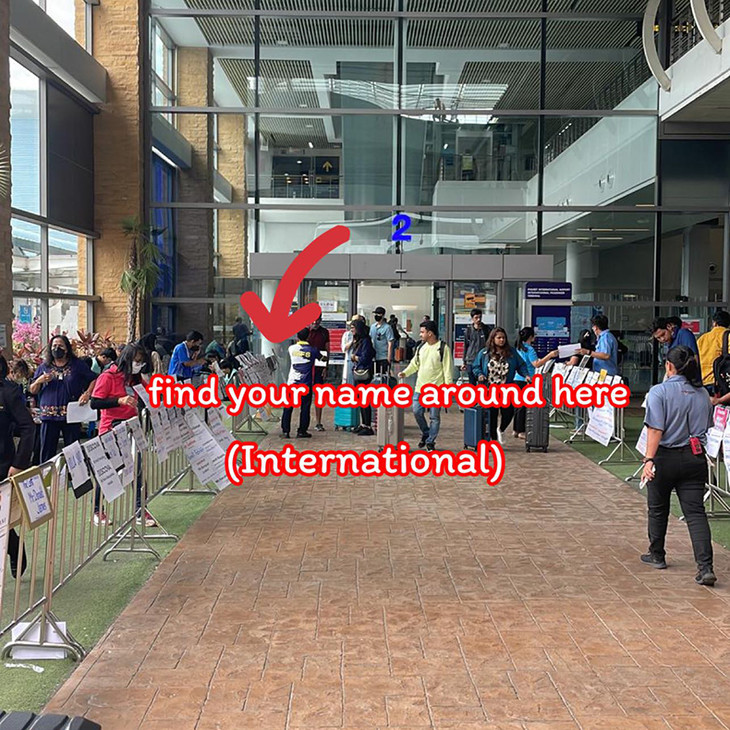 客人从国际航班出口出来之后找到自己的名牌,