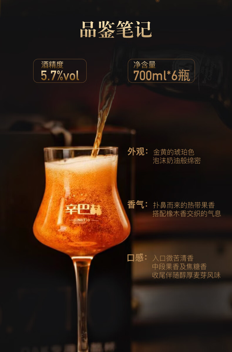 辛巴赫精酿【高端礼赠】OAK橡木桶商务婚宴高端精酿啤酒5.7度700ml*6瓶
