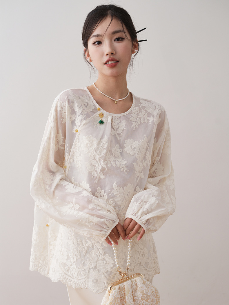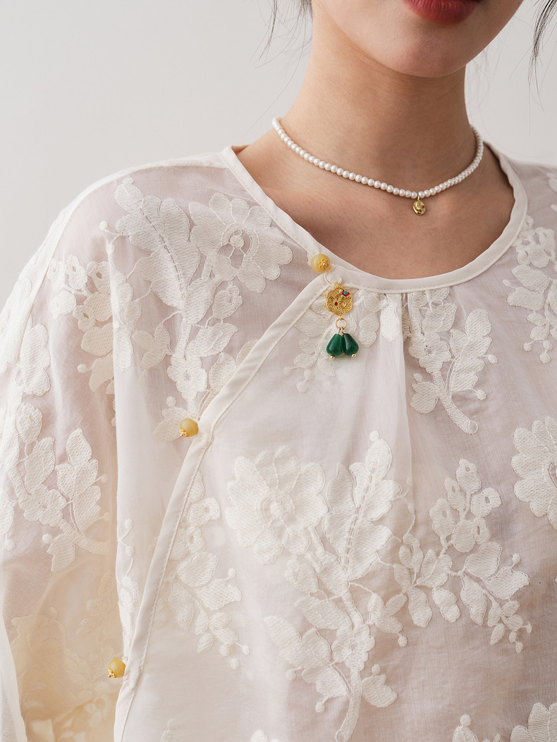 【MOMOTIABIN 新中式服饰2.0】2772送吊带 天丝面料 女装吊坠盘扣 圆领长袖 国风打底衫