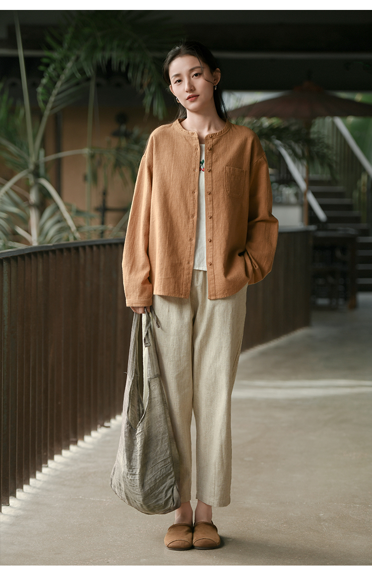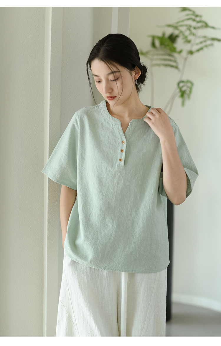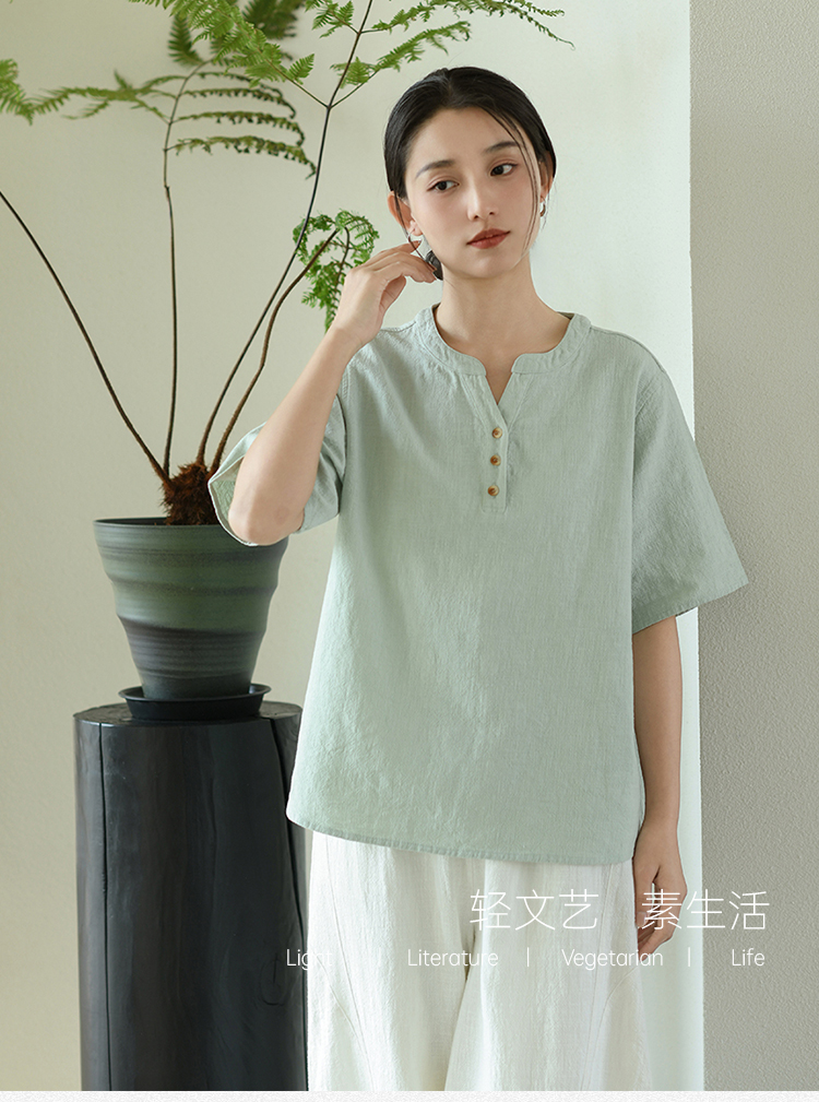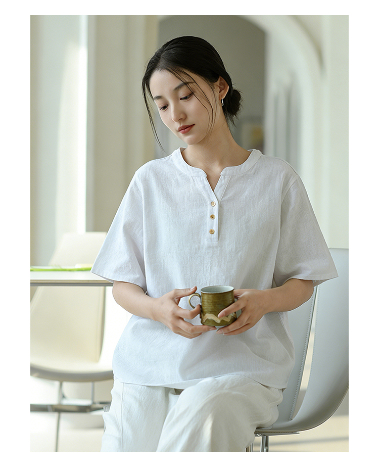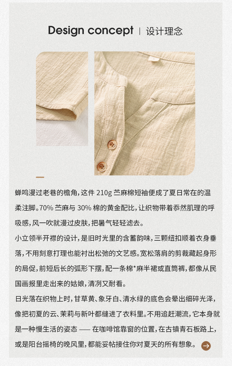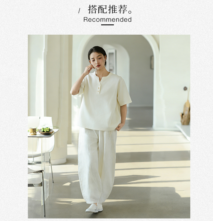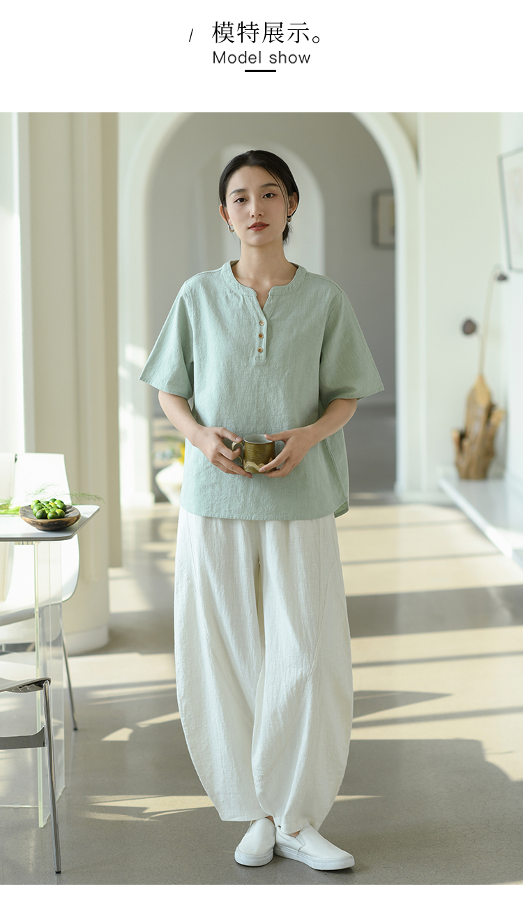 【春夏女装丨女款棉麻服饰系列】面料舒适干爽不易粘身,款式设计兼具休闲感与轻复古风,上身简洁利落,轻松打造慵懒文艺范