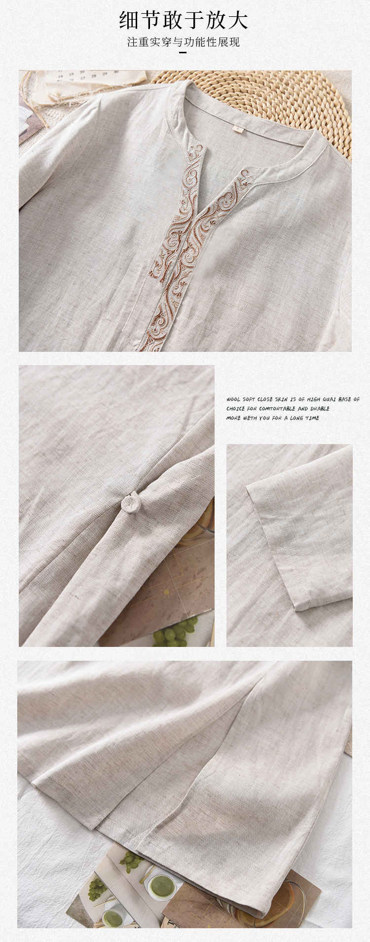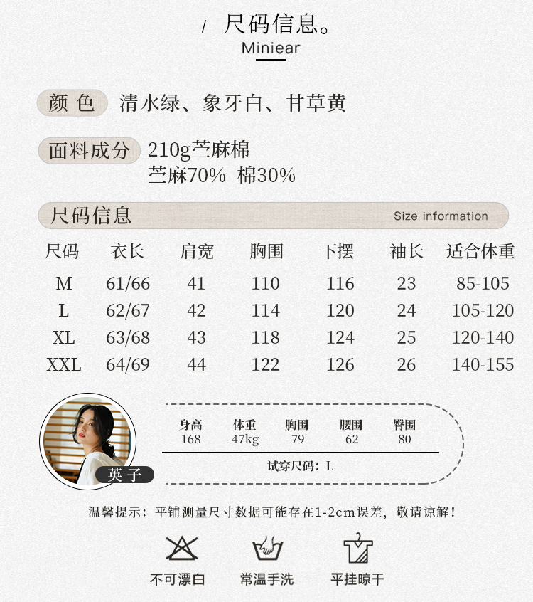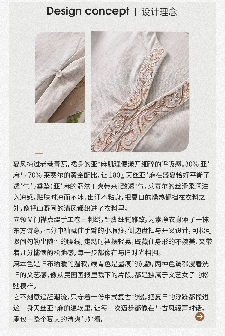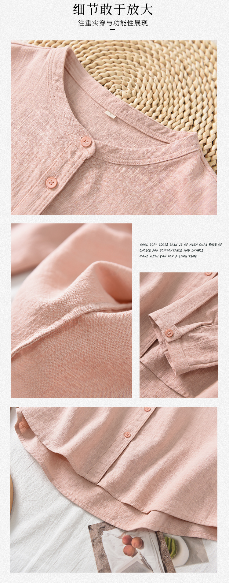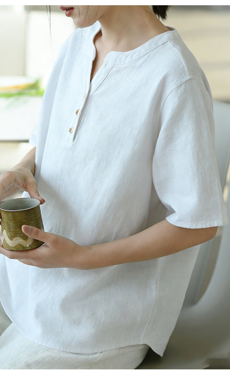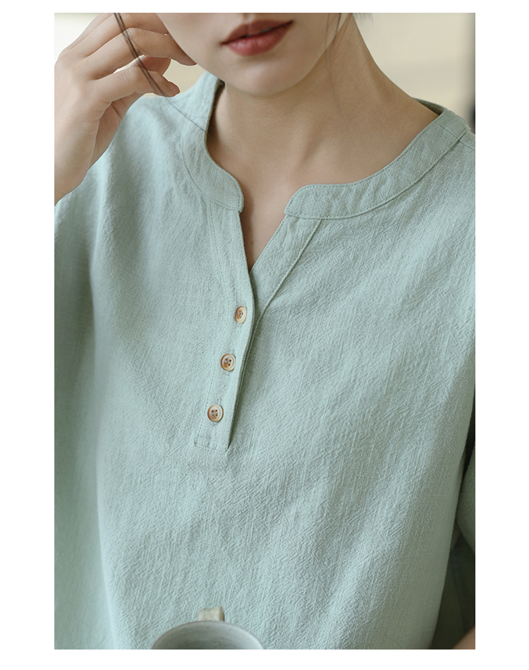 【春夏女装丨女款棉麻服饰系列】面料舒适干爽不易粘身,款式设计兼具休闲感与轻复古风,上身简洁利落,轻松打造慵懒文艺范