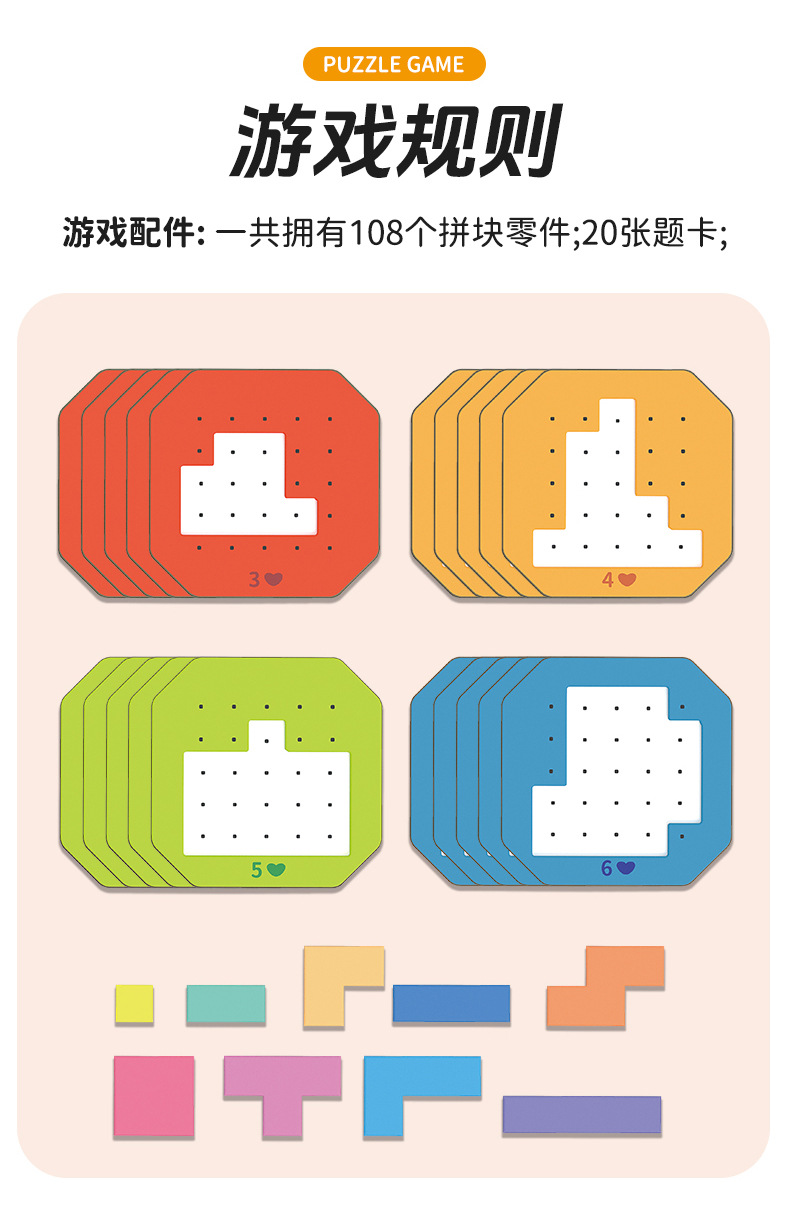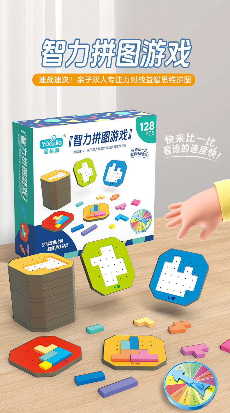 【空间观察比拼 亲子对决】速战速决亲子双人专注力对战益智思维拼图七彩方块拼图桌面玩具