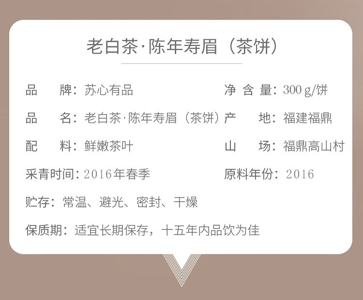 2016年太姥山高山老白茶陈年寿眉茶饼【300g/饼】