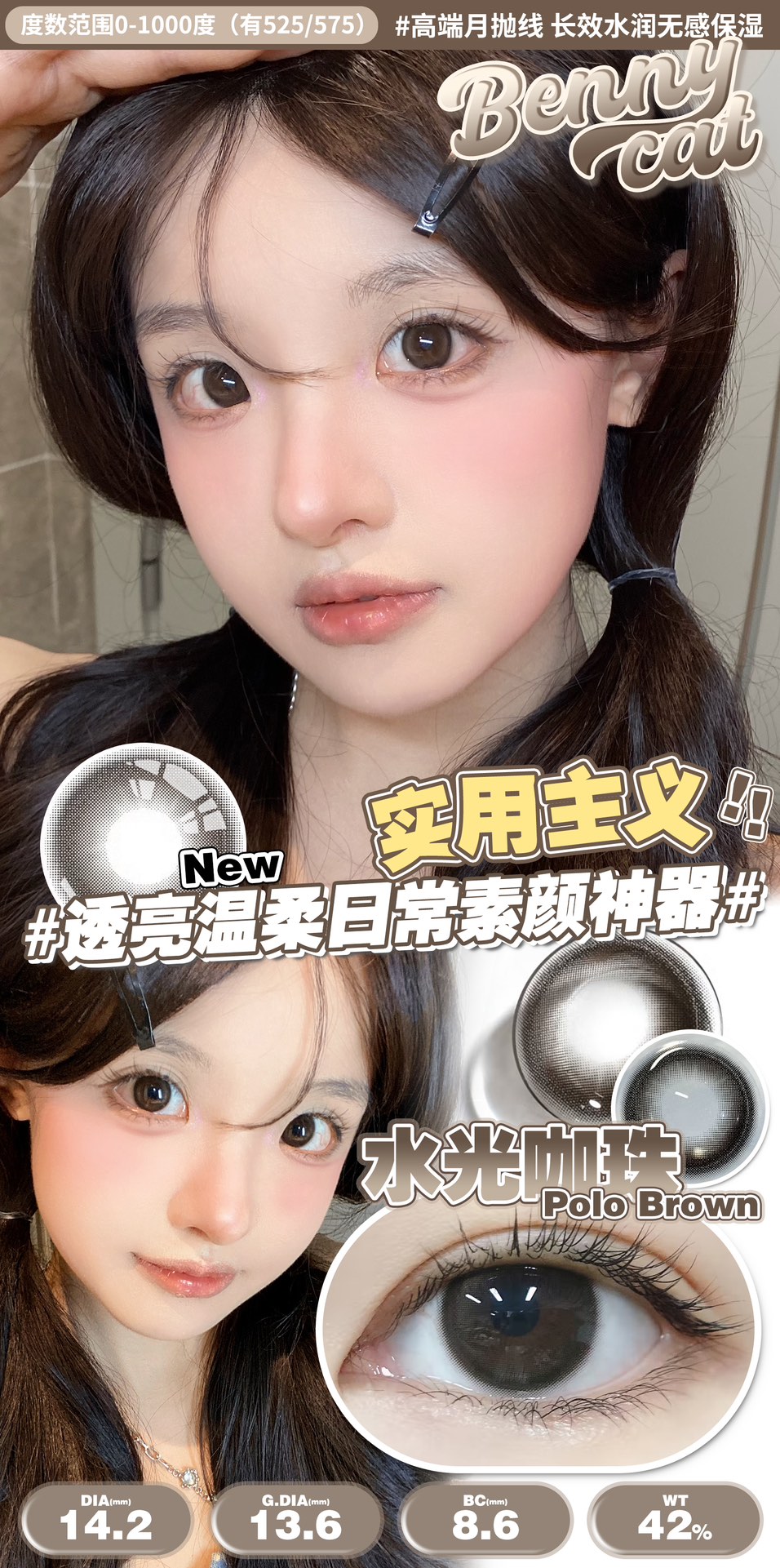 BENNYCAT 水光咖珠 月抛 2片 14.2mm 参考着色 13.6mm 基弧 8.6 含水 42% 新锐国货