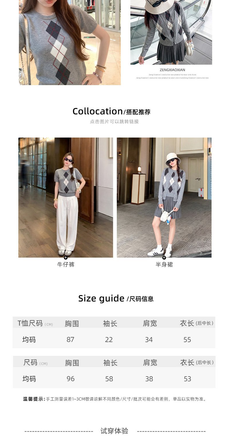 <曾小咸推荐>3.11现货秒杀 !微信超特价!韩系菱形毛织开衫 日常159.99 立减80 秒杀79.99!!灰色针织短袖秒杀59.99!