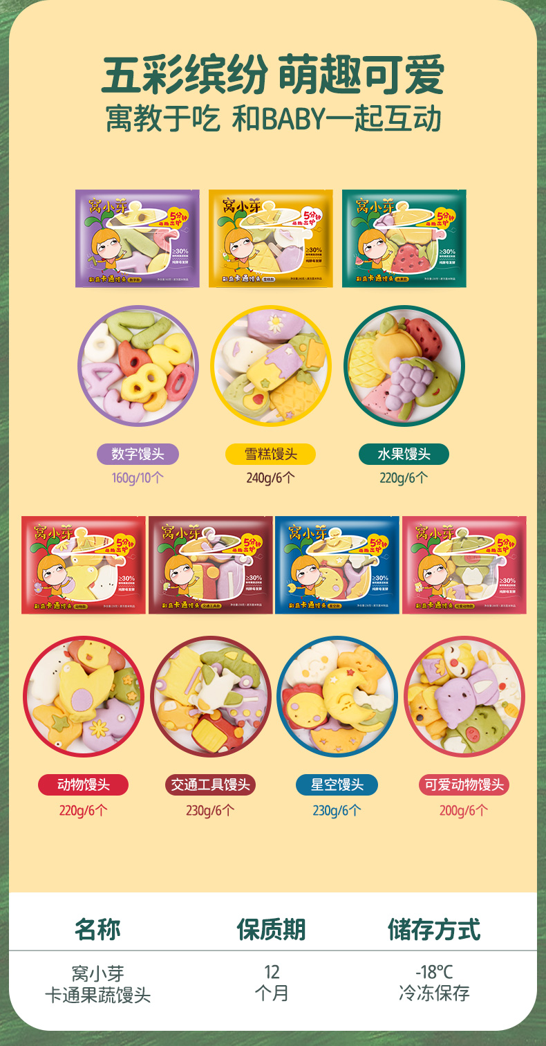 【生鲜预售】窝小芽卡通馒头早餐果蔬馒头9月9日后西宸/悠方自提