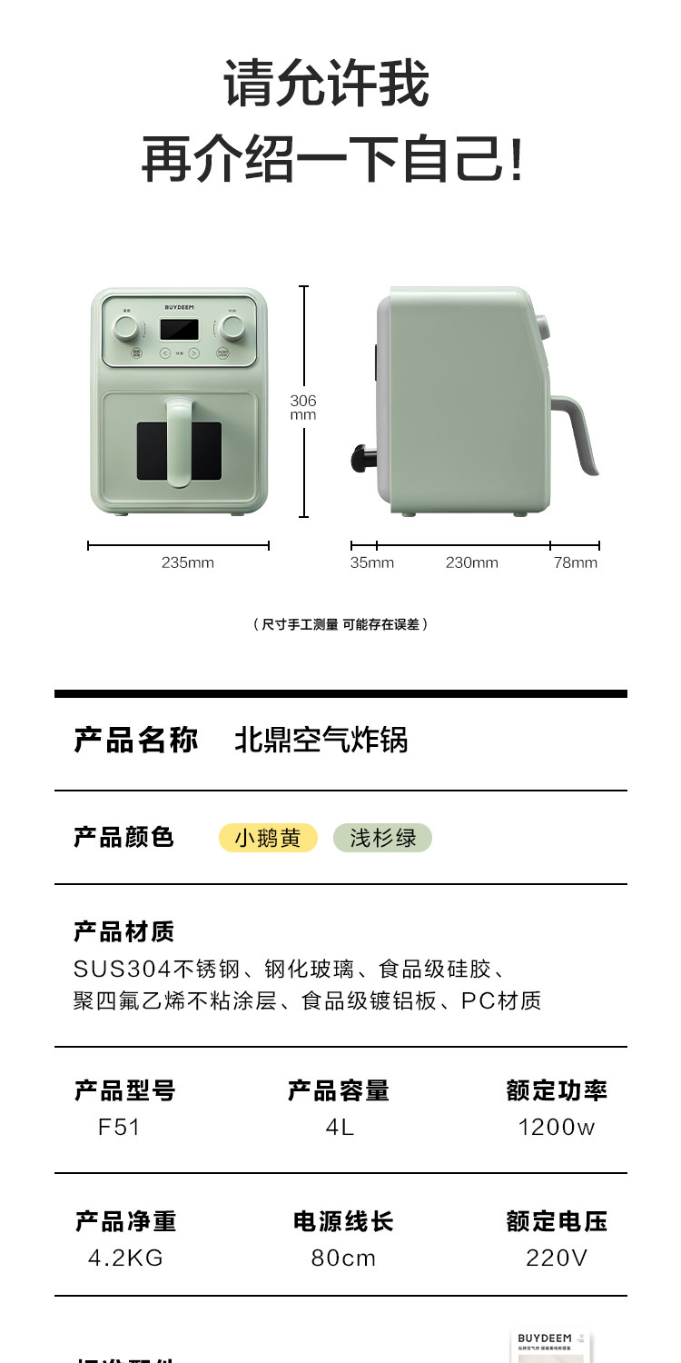【北鼎空气炸锅集合】北鼎空气炸锅多功能可视大容量金属内胆小家电F51
