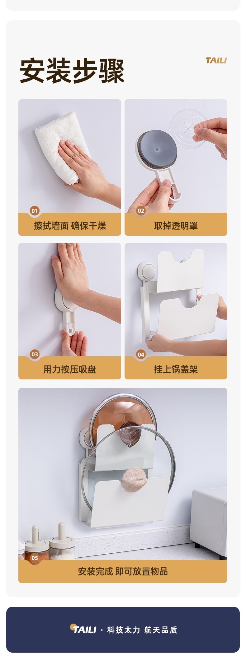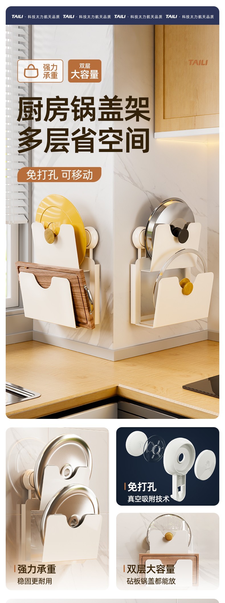 太力-多功能锅盖架 AWW065 免打孔锅盖架厨房