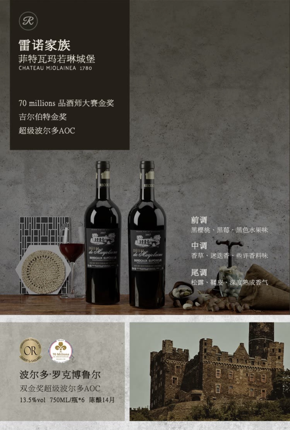 【超波AOC大赛双金奖】菲特瓦玛若林城堡 法国原瓶进口 13.5%vol