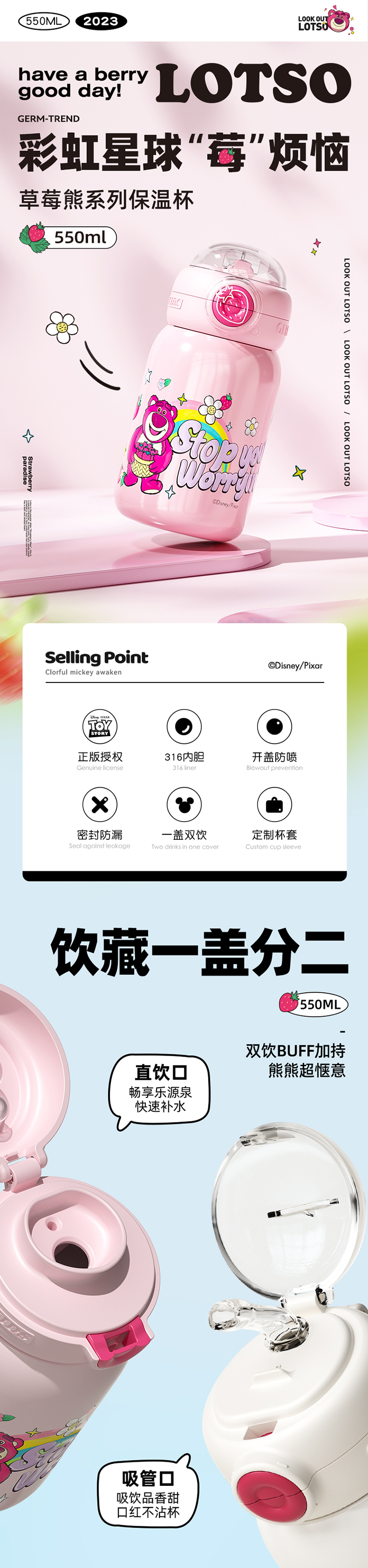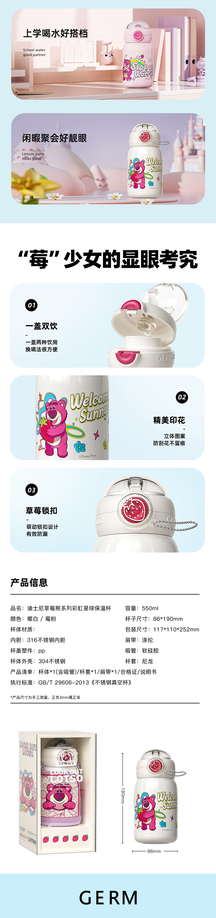 GERM 迪士尼草莓熊系列彩虹星球保温杯