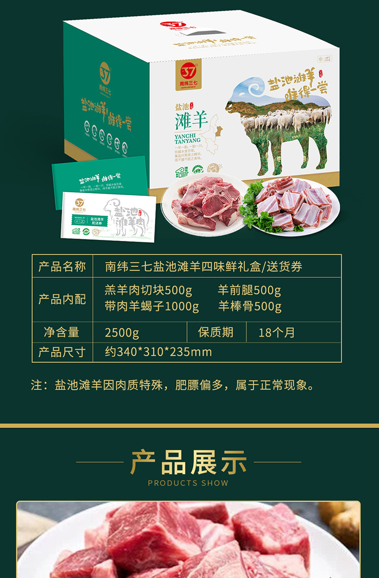 【自营】 南纬三七盐池滩羊四味鲜礼盒 宁夏盐池滩羊 羊前腿带肉羊蝎子羊棒骨羔羊肉2.5kg