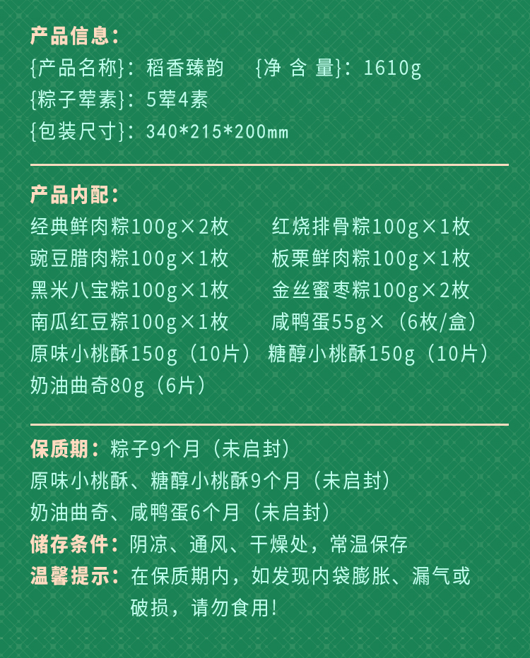 稻香村 稻香臻韵礼盒(9粽6蛋+点心)- 1610g【端午】SKT