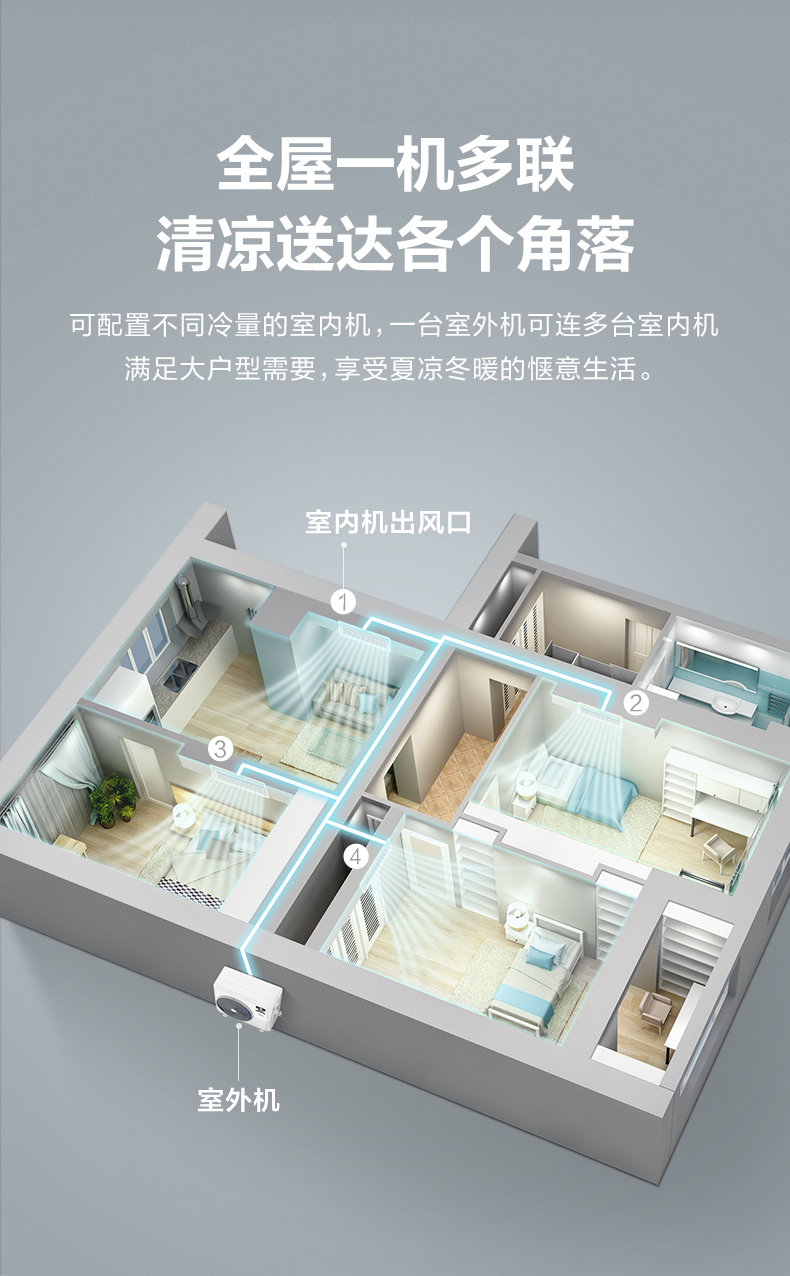 酷风(Coolfree)中央空调家用7匹一拖四/五/六多联机 全直流一级能效 变频冷暖 MJZ-160W/BP3N1-E01CF(1)Ⅱ