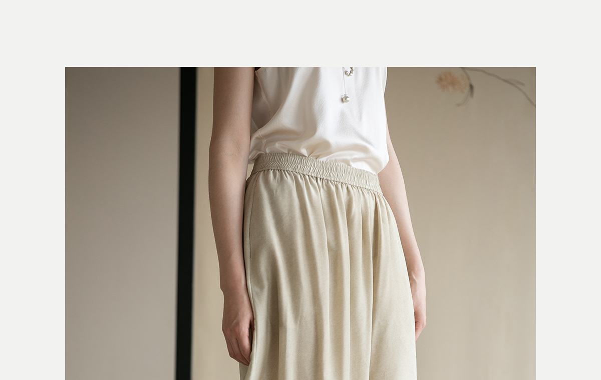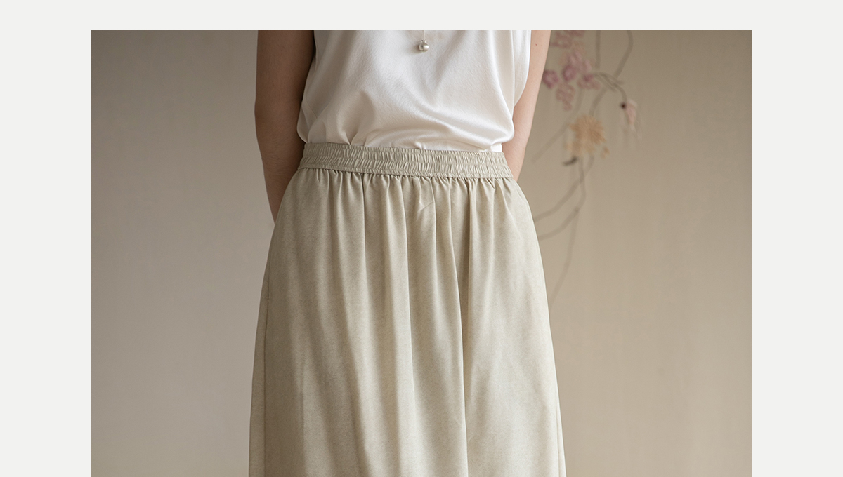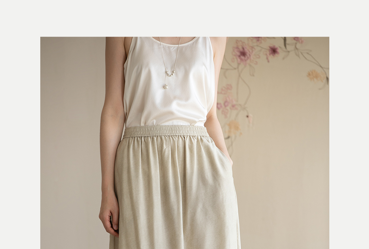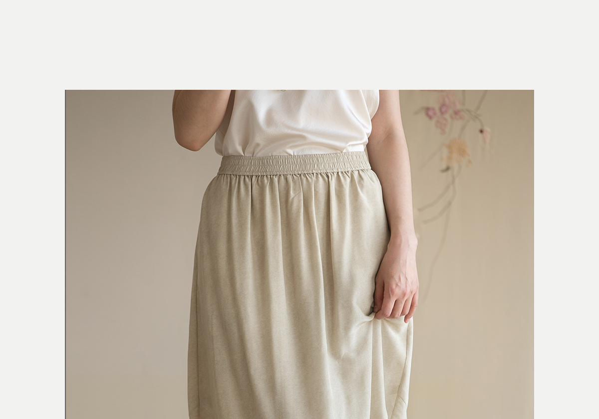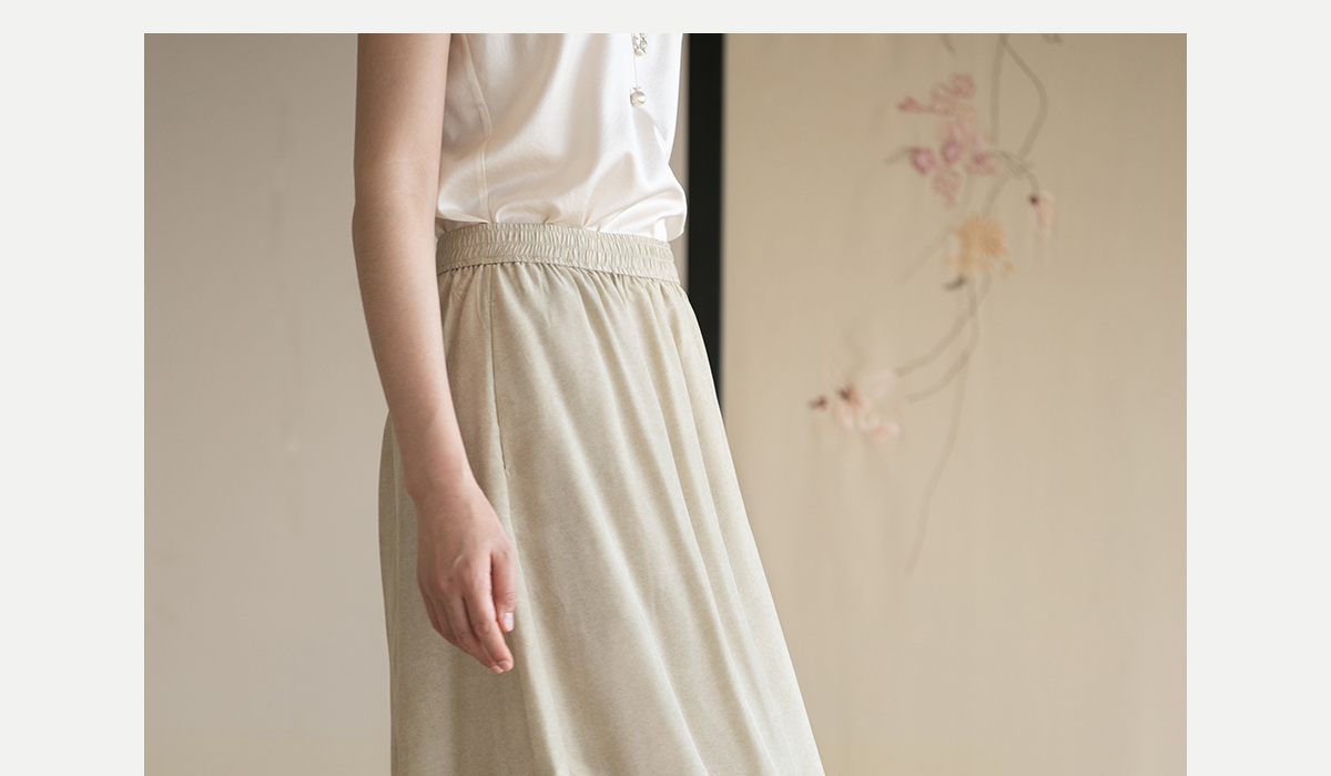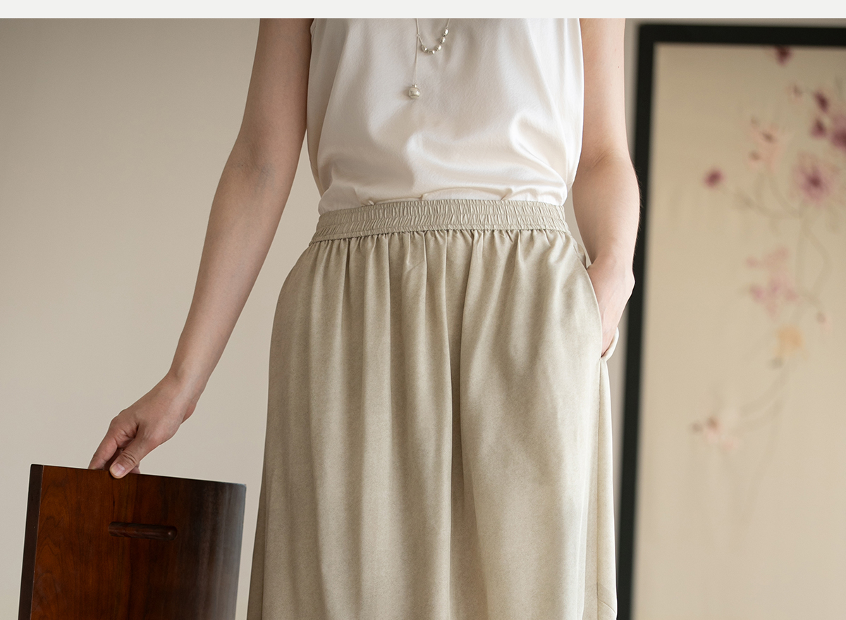 牧衣游原创 真丝混纺半身裙女夏轻薄松紧腰宽松百搭半裙 茶烟石鼎