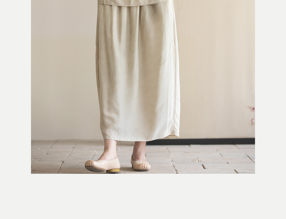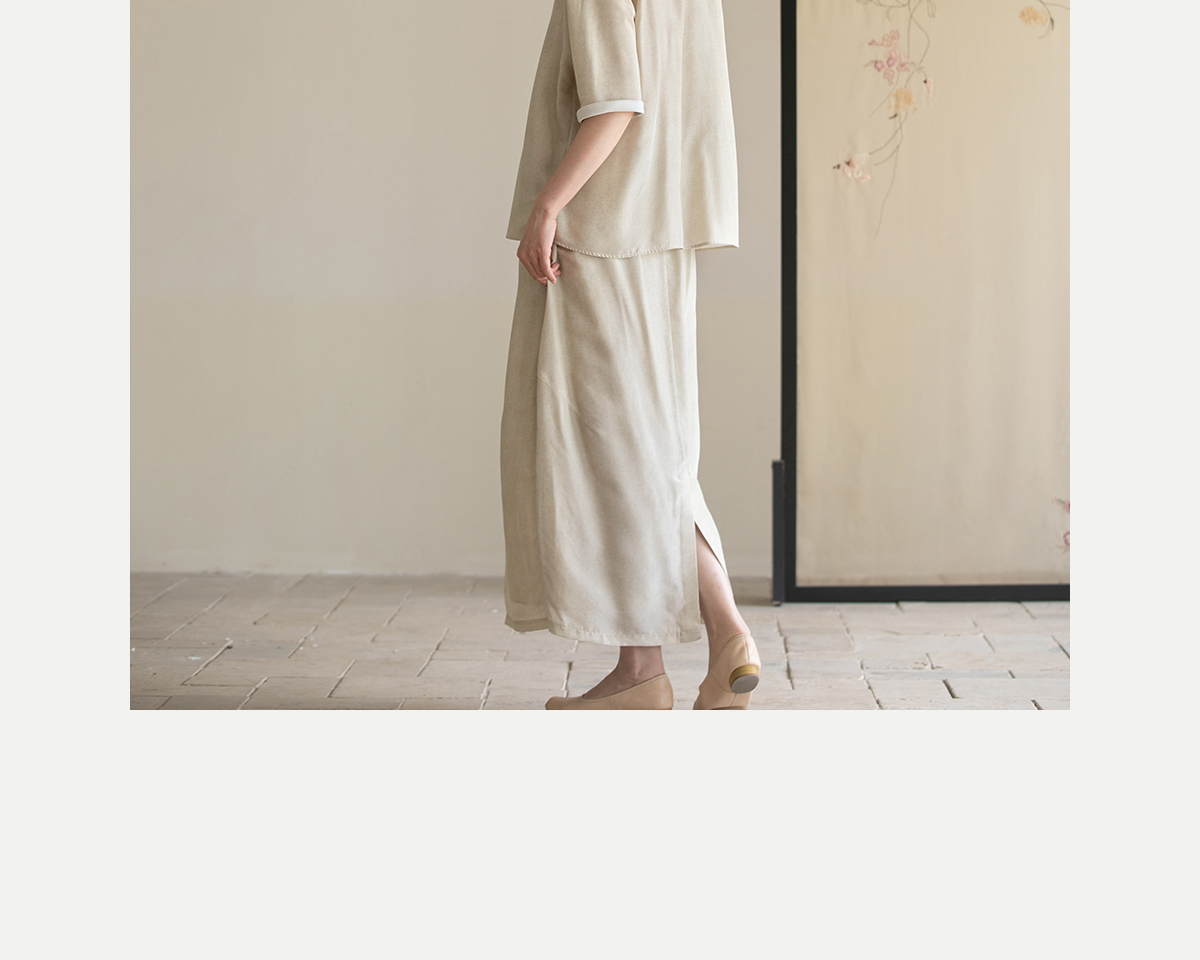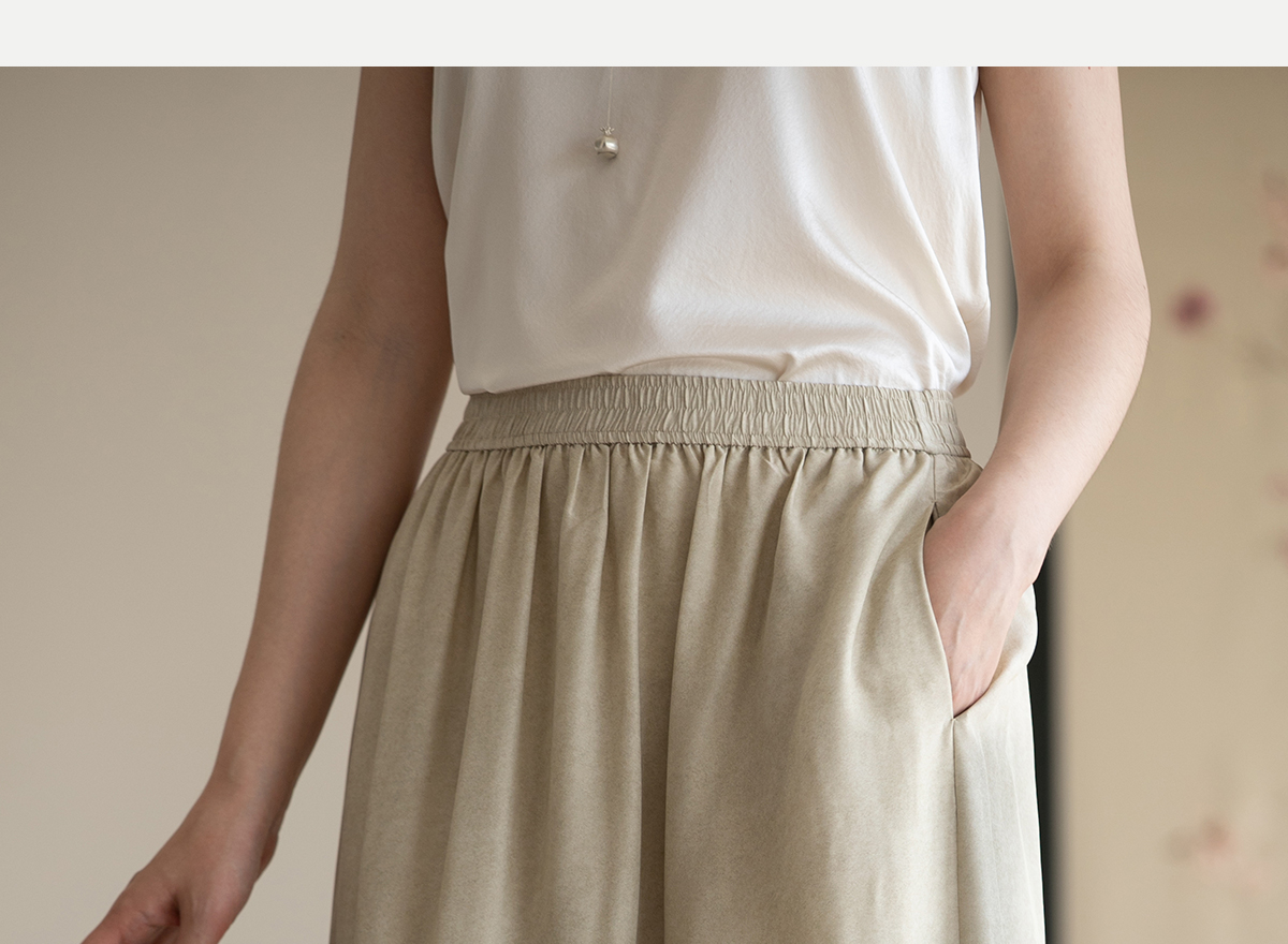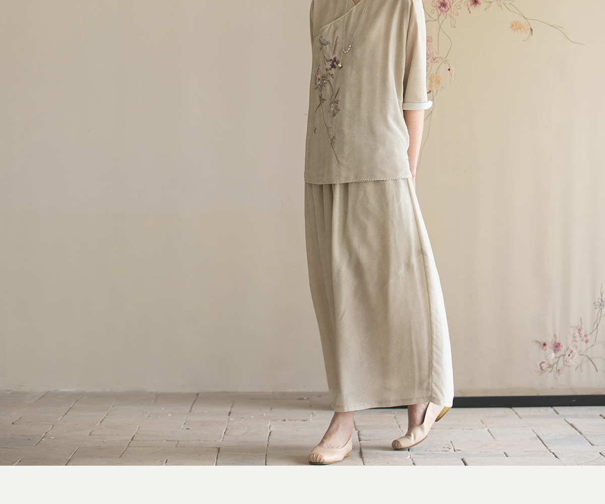 牧衣游原创 真丝混纺半身裙女夏轻薄松紧腰宽松百搭半裙 茶烟石鼎