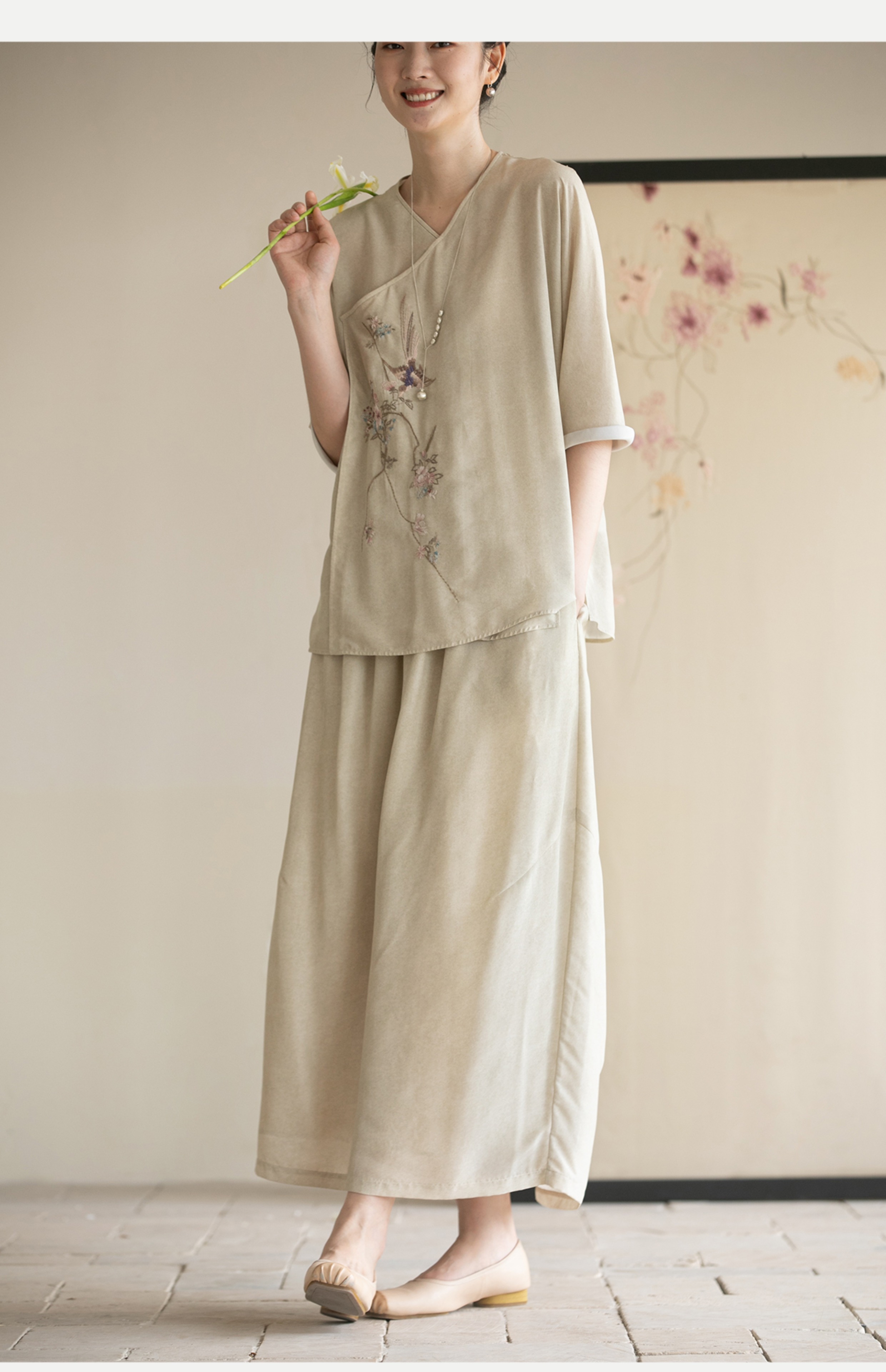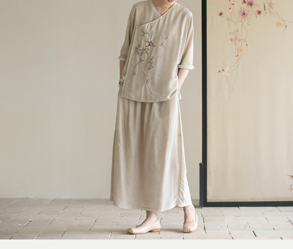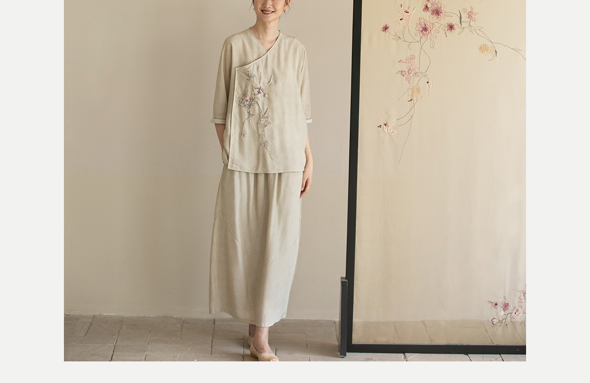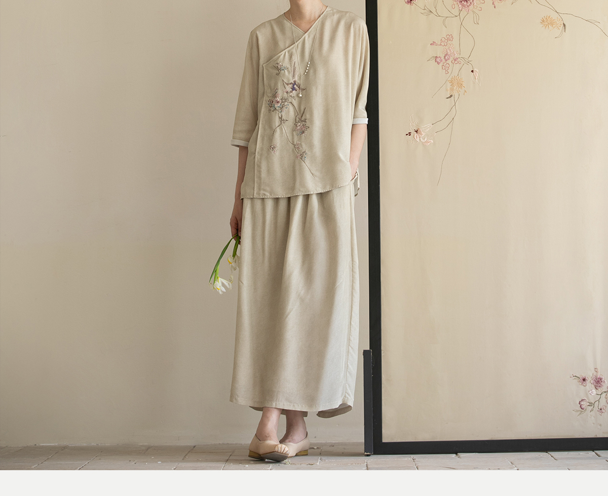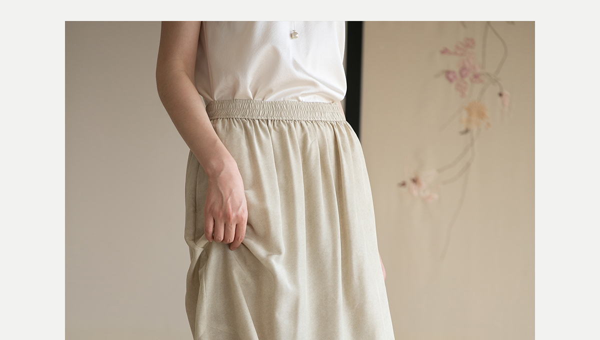牧衣游原创 真丝混纺半身裙女夏轻薄松紧腰宽松百搭半裙 茶烟石鼎