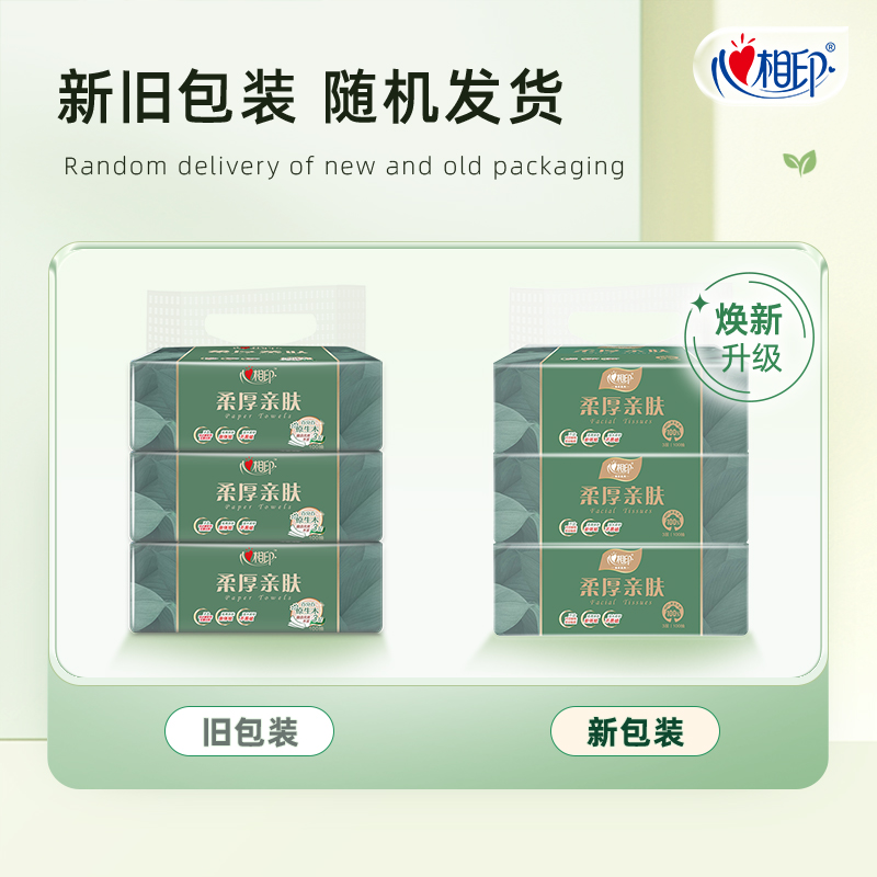 心相印 柔厚亲肤三层100抽塑装纸面巾3包 无香型卫生纸 天然原生木浆面巾纸 纯物理压合 健康环保 不含荧光增白剂 放心用