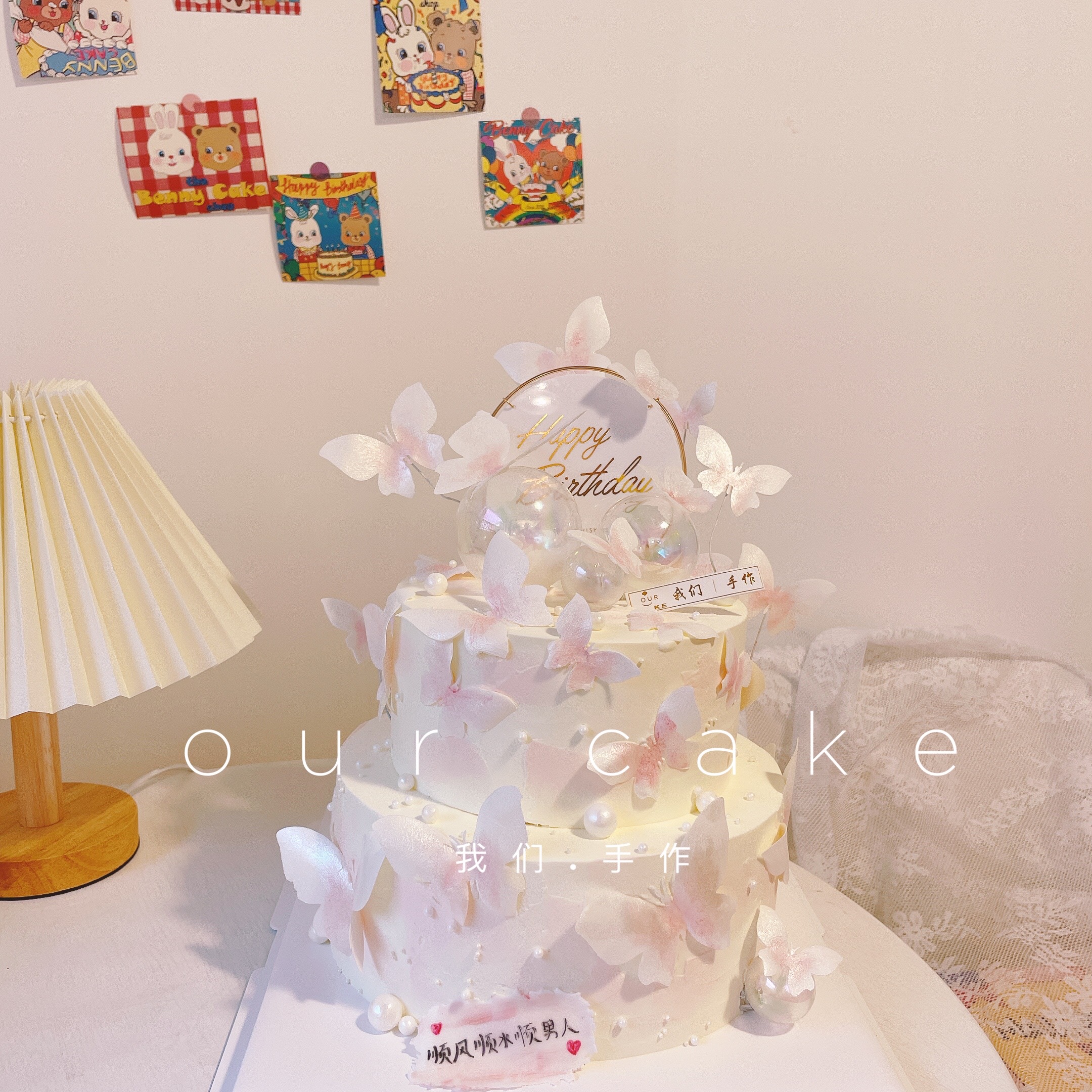 仙女粉色蝴蝶蛋糕-低糖处理无添加