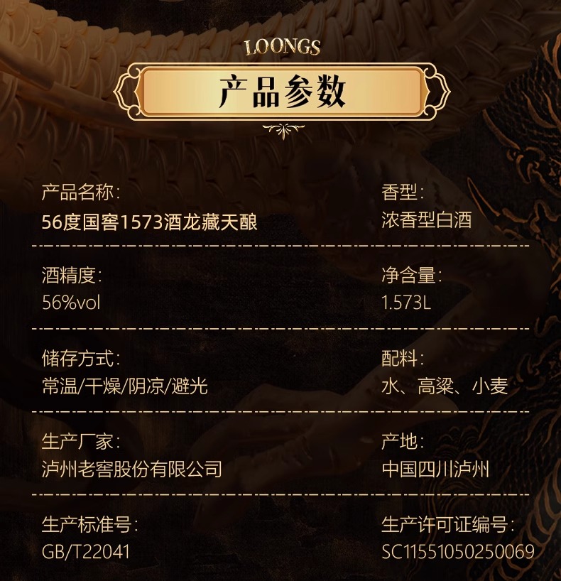 56%vol 国窖1573·龙藏天酿 1.573L 泸州老窖官方旗舰店