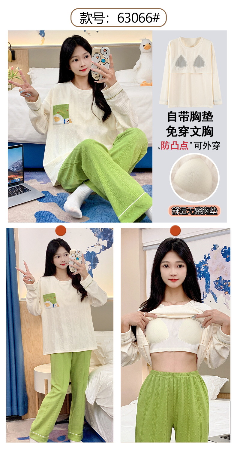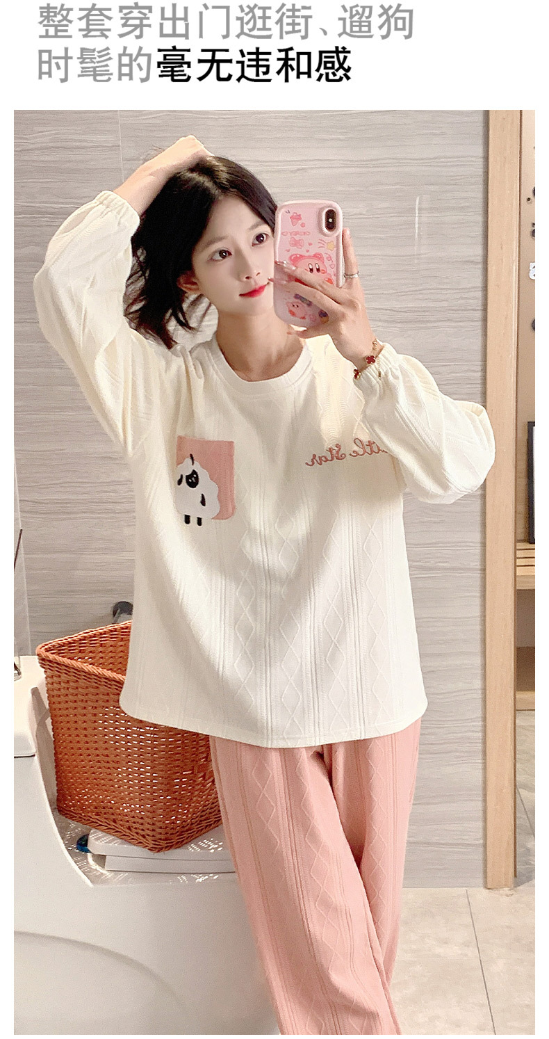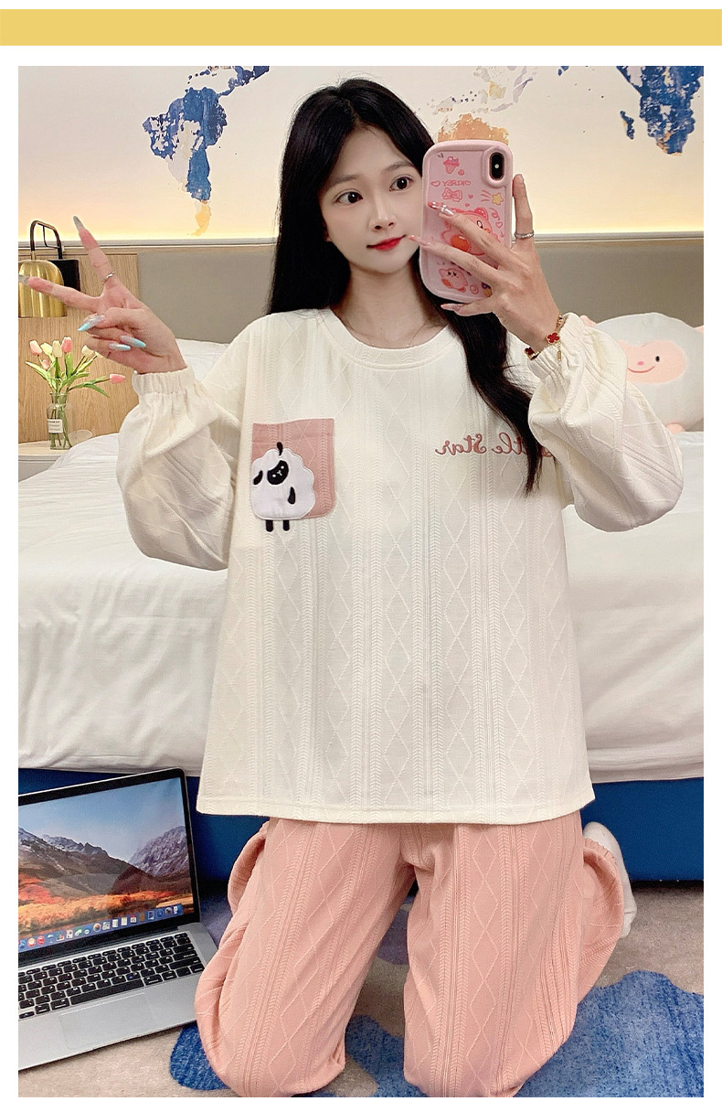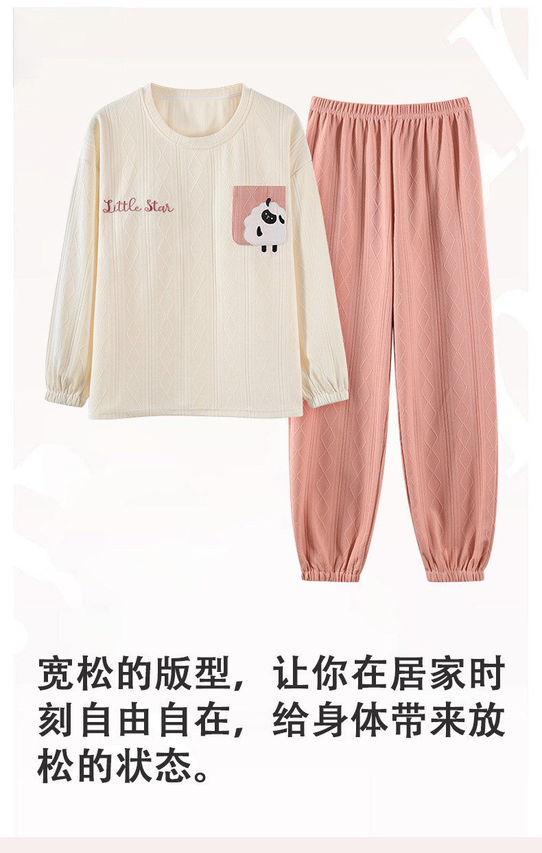 秋季新款学生家居服可外穿带胸垫睡衣女春秋季提花棉长袖圆领甜美可爱可外穿女士家居服套装