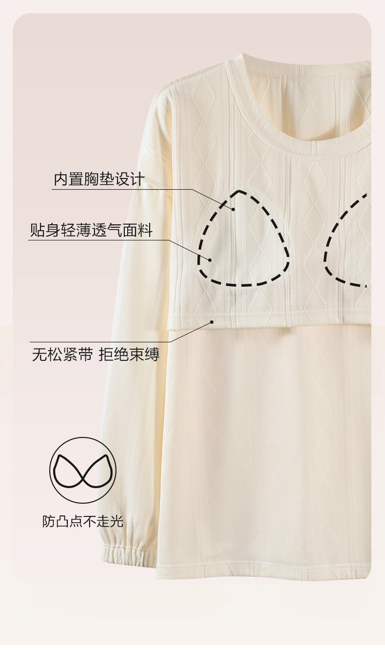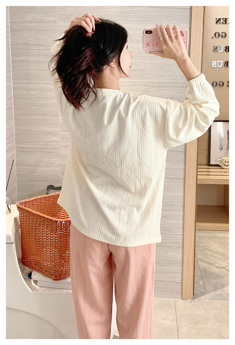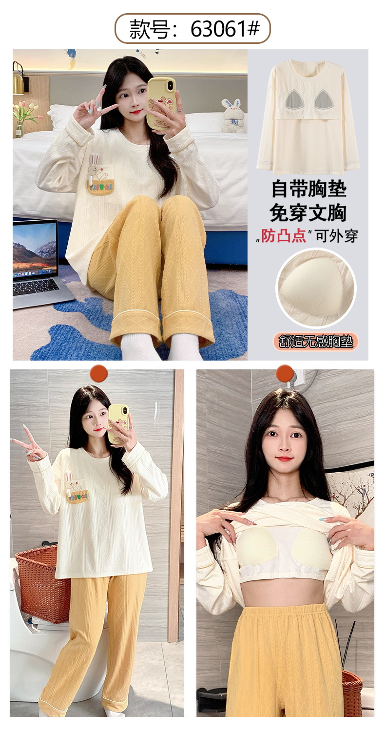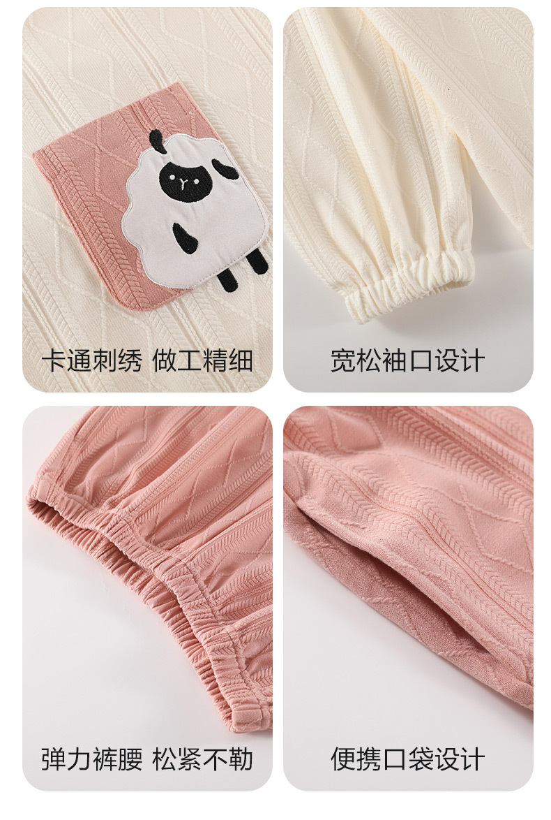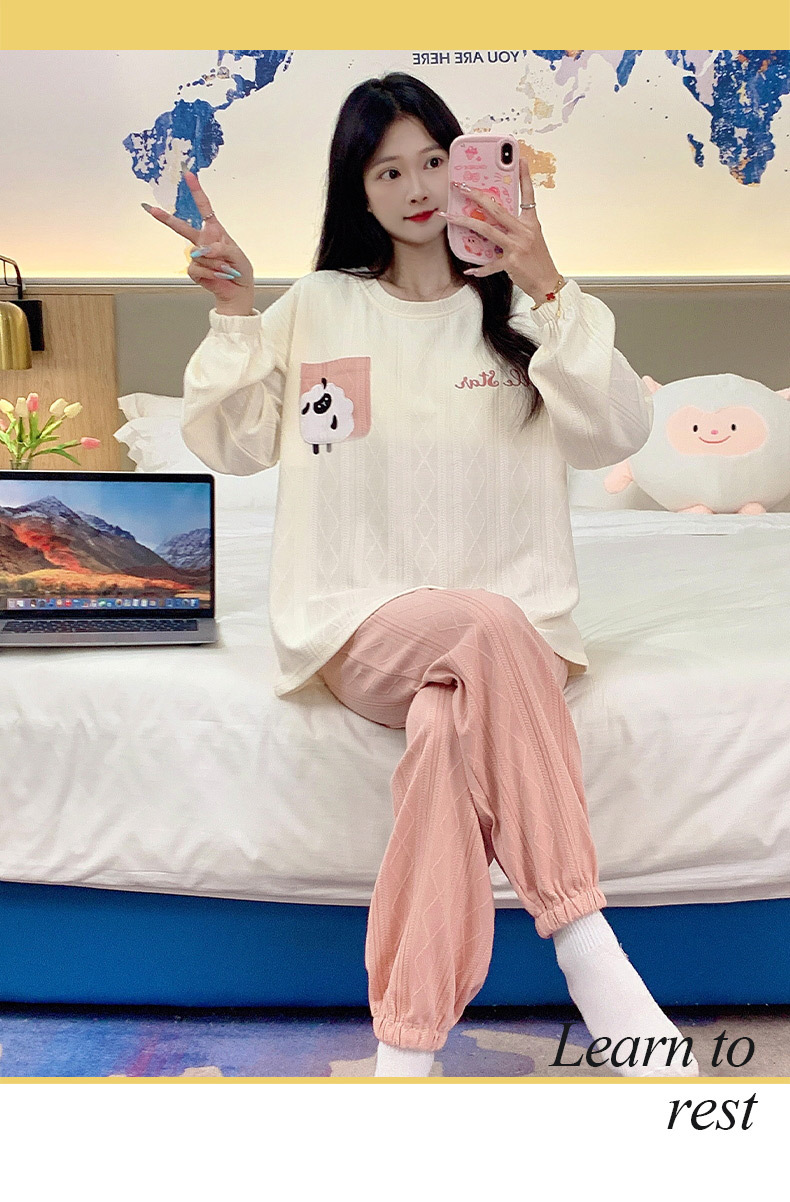 秋季新款学生家居服可外穿带胸垫睡衣女春秋季提花棉长袖圆领甜美可爱可外穿女士家居服套装