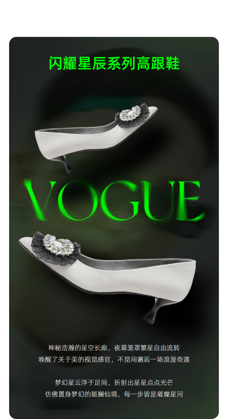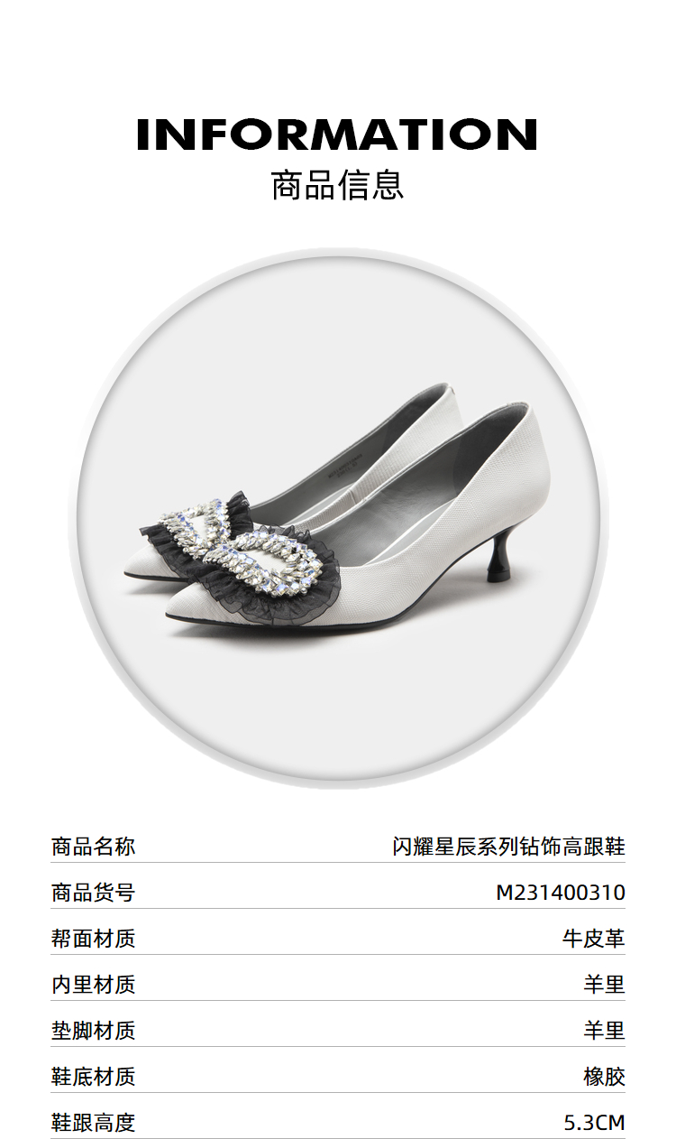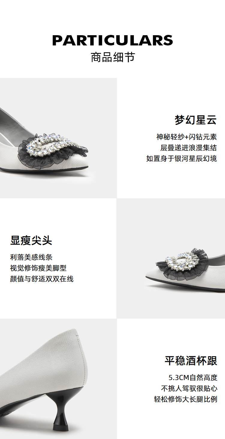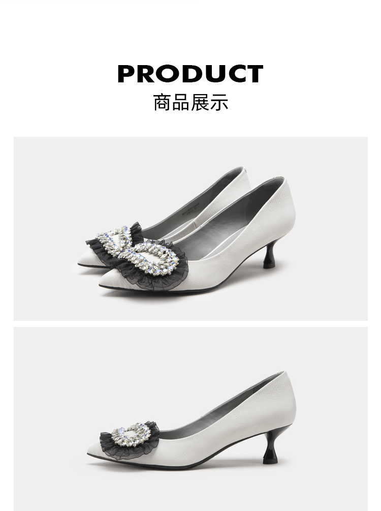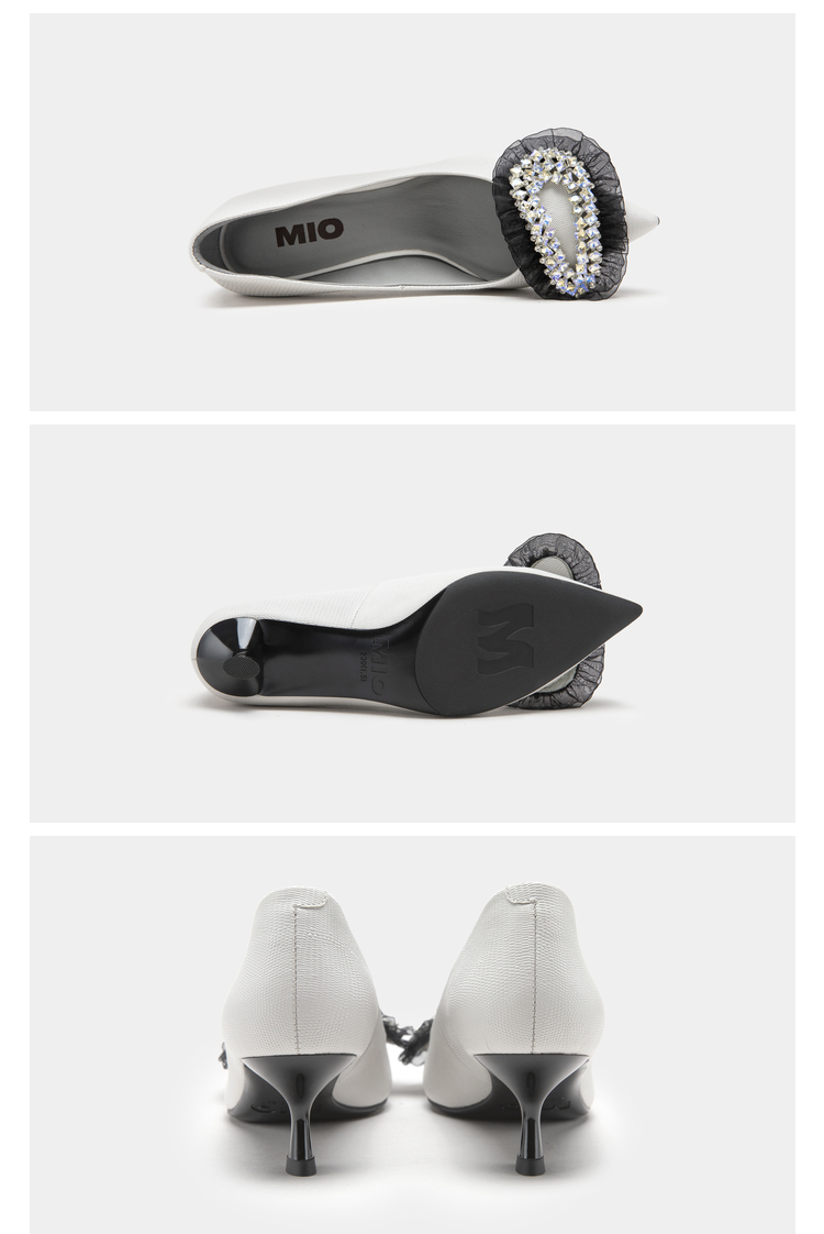 MIO米奥春季尖头高跟舒适显瘦单鞋闪钻轻纱优雅时髦高跟鞋女 M231400310