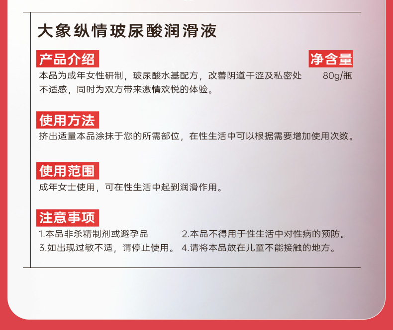 【双旦狂欢·钜惠来袭】 大象纵情玻尿酸润滑液 内外双用 多维快感